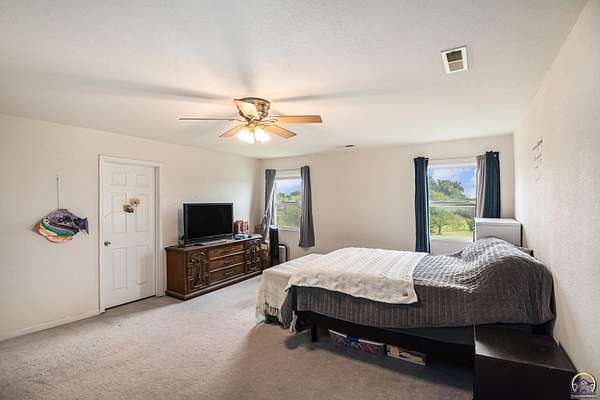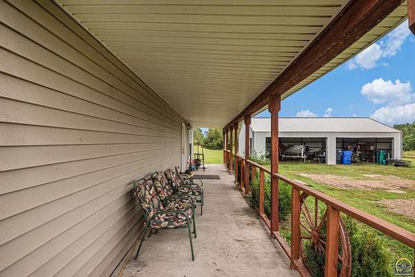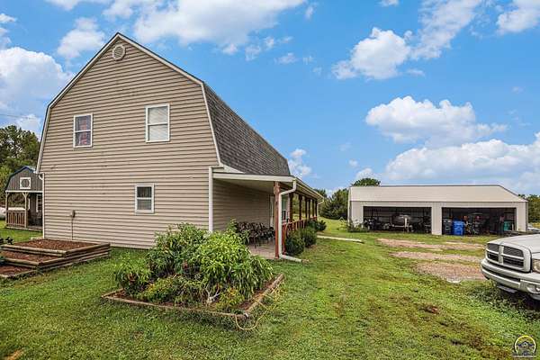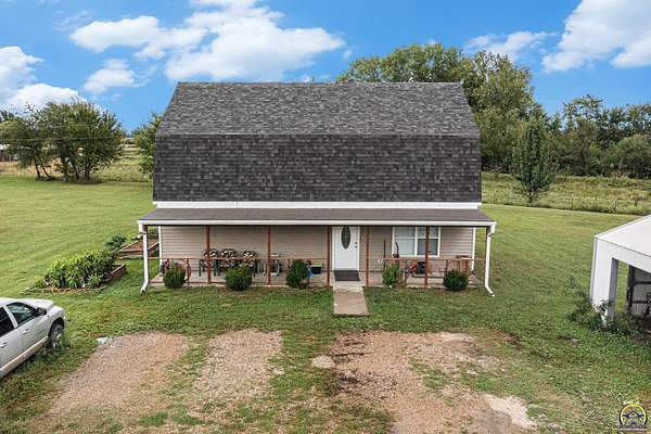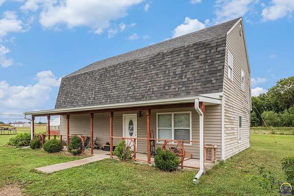 Welcome to your charming country retreat nestled in a serene country setting in lovely Meriden, KS. This newer two-story residence, built in 2003, boasts three spacious bedrooms and two bathrooms, all situated on a generous 5.14 acres. Enjoy the tranquility of rural living while being conveniently located just off K4 Highway. Step inside and discover a large main bedroom that offers countryside views from every window. The main floor features a comfortable bedroom, convenient laundry facilities, and spacious living areas. The kitchen, featuring newer appliances that will stay with the home, perfect for culinary enthusiasts. Newer water softener and reverse osmosis are an added bonus. Outdoors, you'll find a brand new greenhouse to nurture your gardening passions, along with a versatile storage shed that can serve as a tiny home, workshop, or flex space. Enjoy the oversized, detached garage This property also includes raised bed gardens flourishing with a variety of peppers and vegetables, ideal for homegrown meals. Relax and unwind in the above-ground pool or on the large covered porch, perfect for entertaining guests or enjoying peaceful evenings and morning coffee. Don't miss the chance to own this unique property that combines privacy with country charm. Check out the aerial views to fully appreciate the beauty and potential of the land!