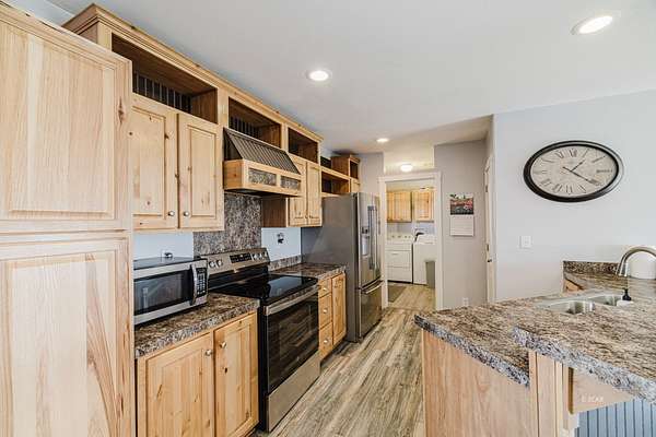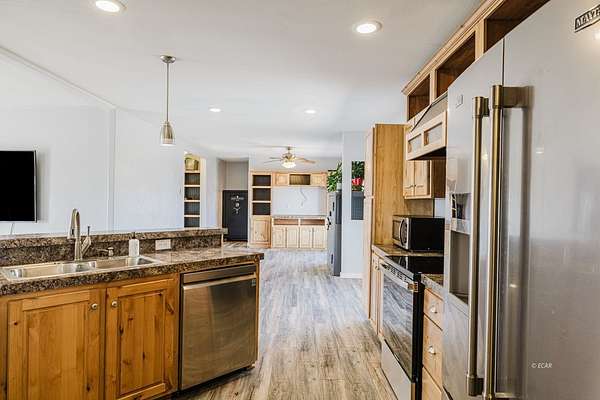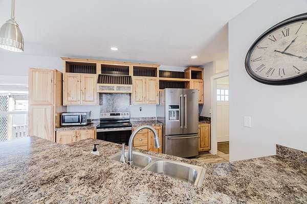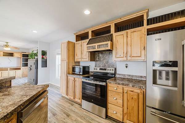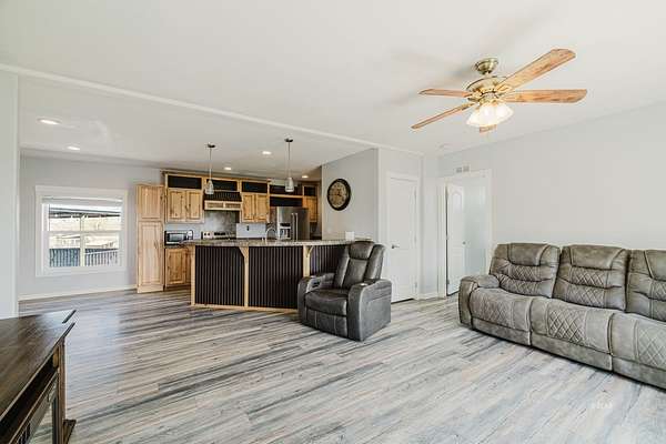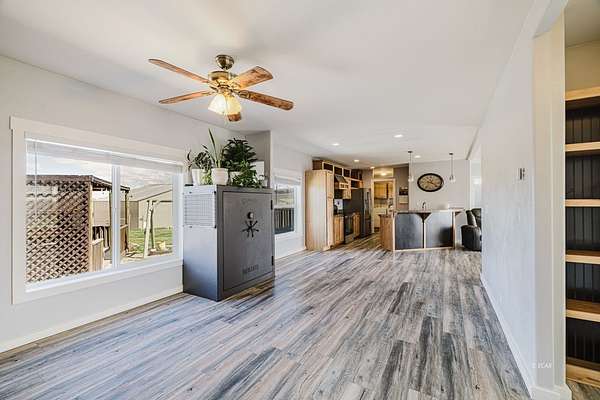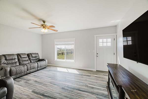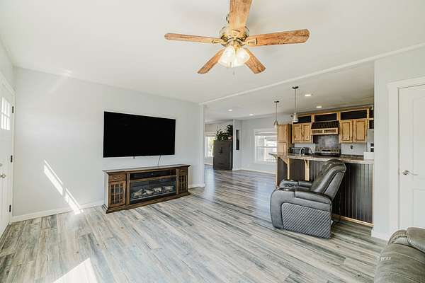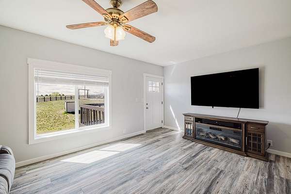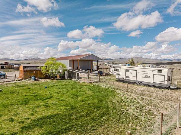Step into this home designed for easy living and effortless entertaining. Featuring an all-electric setup, the open floor plan creates a seamless flow between living, dining, and kitchen spaces-perfect for both everyday living and hosting guests. Three bedrooms, two full baths, kitchen with a eat in bar area, all kitchen appliances stay, a separate dining area with built in storage, laundry room with back deck access. Enjoy the outdoors with covered entertaining deck, an ideal spot for relaxing or gathering with friends and family. The spacious yard provides plenty of room for gardening, room for horses or animals or simply taking in the fresh air. A handy storage shed adds extra functionality for tools and equipment. For those needing workspace or storage the impressive 2,400 sq ft detached shop is a standout feature-perfect for hobbies, projects, or housing recreational vehicles in the covered awning portion. This property combines comfort, practicality, and space, offering a versatile lifestyle both inside and out.