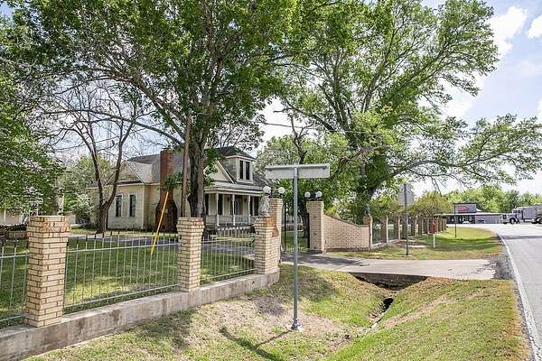 Prime 1.72-acre corner lot in the heart of historic Chappell Hill, ideally located near the Highway 290 intersection. This unique property offers road frontage on three sides and is surrounded by mature trees, creating a beautiful and versatile setting. The property is fully enclosed with a combination of brick and rod iron perimeter fencing and decorative accents, along with multiple concrete driveways for easy access. With no zoning restrictions, this property presents endless potential for residential or commercial use. Improvements include an antique Victorian home in need of restoration or teardown (hazardous conditions - enter at your own risk), a detached three-car garage, playhouse, and party room. Property is being sold AS IS for lot value only. Property has been vacant for many years and is in a trust, so no disclosures and property condition unknown.