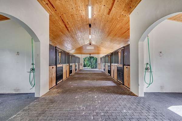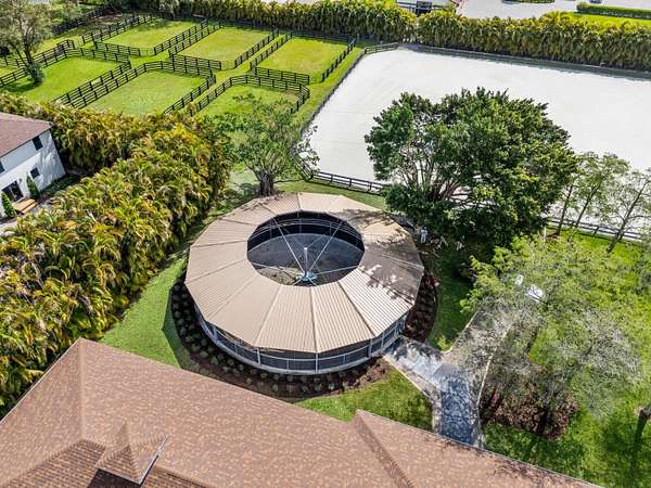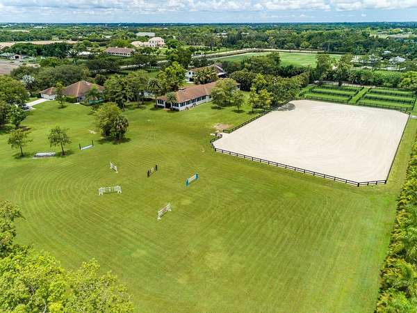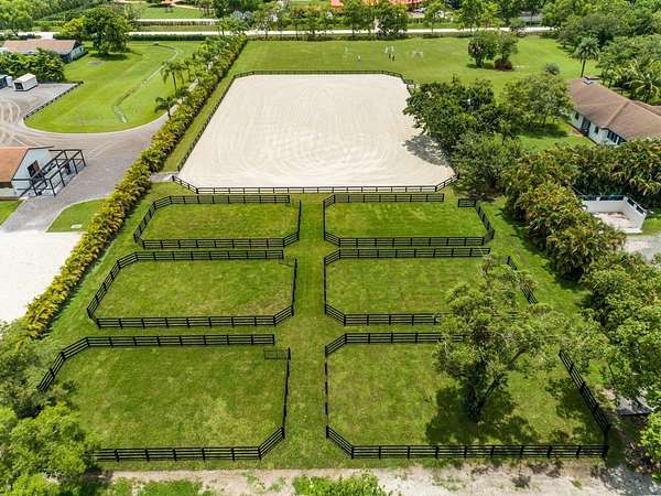 Enjoy the best of both worlds on this exceptional 10+-acre equestrian property, ideally located just minutes from Global and WEF while offering the tranquility of Wellington's farm life. This property combines top-tier equestrian amenities with luxurious living, providing everything needed for you and your horses. The 26-stall center-aisle barn is the standout feature of this property, equipped with 6 wash stalls, 2 tack rooms, a feed room, and a lounge. A separate building offers even more versatility, with a second lounge, 2 bathrooms, an oversized laundry room, and 2 spacious 2-bedroom, 1-bathroom apartments. Additionally, a huge storage area provides ample space for hay, shavings, tractors, golf carts, jumps, and farm equipment. Other equestrian facilities include 2 all weather arenas a large grass riding field, a 6-horse covered hotwalker, and 15 paddocks, all designed to support training, turn-out, and leisure riding. The property features two beautiful homes. The original 4-bedroom, 3-bathroom single-story home has been recently remodeled throughout, offering wood and tile floors, a beautiful kitchen with all new appliances, and a screened-in patio with a heated pool and jacuzzi for relaxing. The second residence is a newly constructed 2-story, 4-bedroom, 3-bathroom home with modern finishes, ideal for a property manager or staff. Privacy and convenience are essential, with 1 private entrance for the original home and 2 separate entrances for the barn, allowing easy access. The estate is surrounded by lush landscaping, including a clusia hedge and tropical palms, offering both beauty and privacy. Recent updates include brand-new roofs on all structures, a new water filtration system and newer AC units throughout. This property offers the ideal blend of luxury, functionality, and location, making it the perfect place to live, train, and enjoy the equestrian lifestyle. List of improvements with current owner -Replaced ALL the roofs on all structures (barn, house, storage building) -Added an oversized arena approximately 150' x 250' -Replaced the footing in both arenas (ESI) -Added a 6 horse hotwalker -Added an additional 8 stalls and refaced all stalls -Added one additional tackroom and 2 additional wash stalls -Added paddocks (total of 15) -Replaced the AC units and Hot water heaters -Added an additional septic system -Added a new well -Replaced the water system servicing the house and barn -Completely updated/remodeled the original house -Built a brand new two story 4 bedroom 3 bath house -Updated the 2 staff apartments both 2 bedroom 1 bath -Added a laundry room for the barn -Added a second lounge with a full bathroom -Added a 3rd automatic gate off 57th Place -Replaced the pool heater, screening around the pool and leveled the pavers -Added a Clusia hedge along the front and side of the property for additional privacy -Added a coved viewing deck along the larger arena
