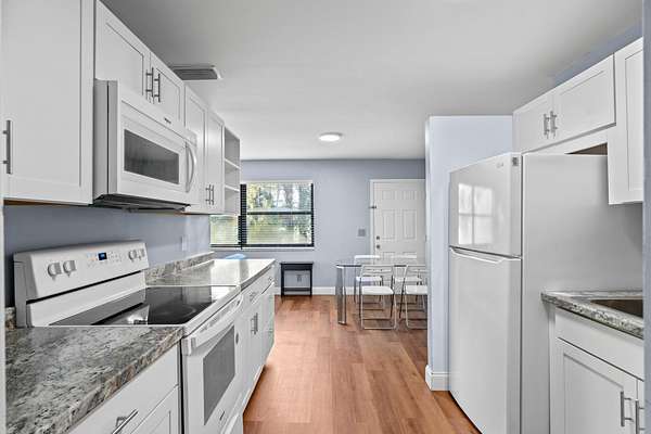 - Dishwasher, Disposal, Dryer, Electric Range, Electric Water Heater, Microwave, Refrigerator, Washer, Water Heater