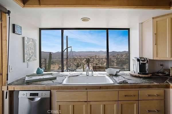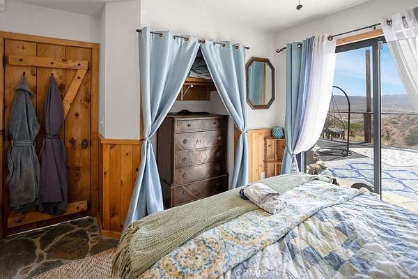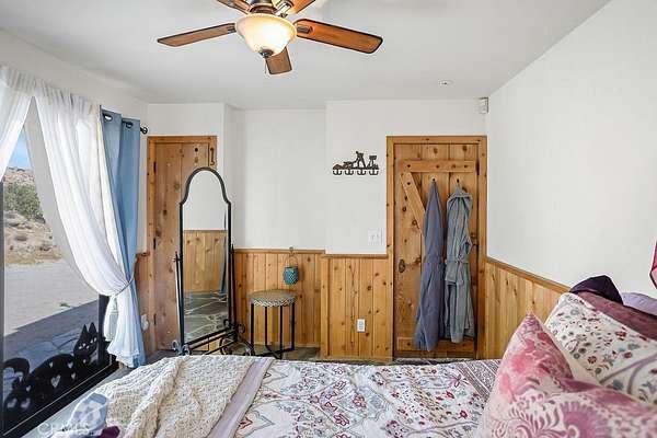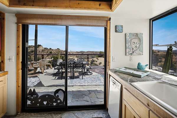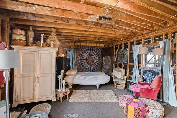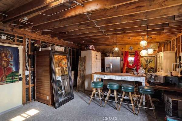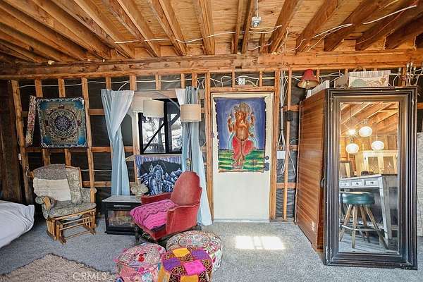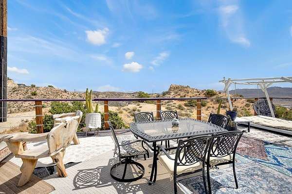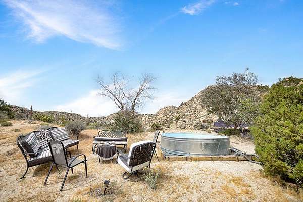 The drive up to the property sets the mood, as you are surrounded by beautiful desert flora, rolling hills, and boulder formations often only found in Joshua Tree National Park. Pulling into the private driveway, you’ll find a hip artistic compound ready for your ideas!