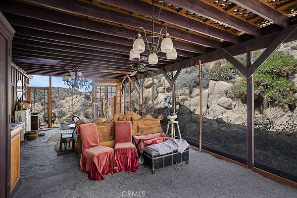 Need a creative space? The large art studio has plenty of room for any endeavor you’d like to pursue or would make a perfect home gym, office, or storage area. It features an extended outdoor living space nestled right up against a boulder mountain!