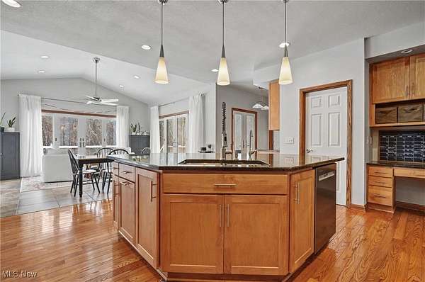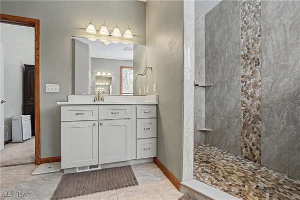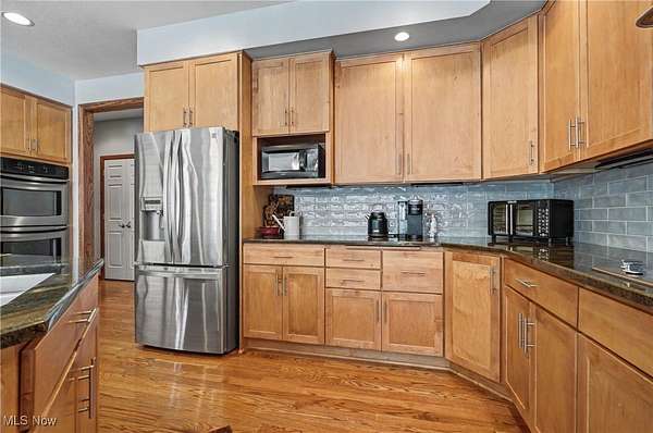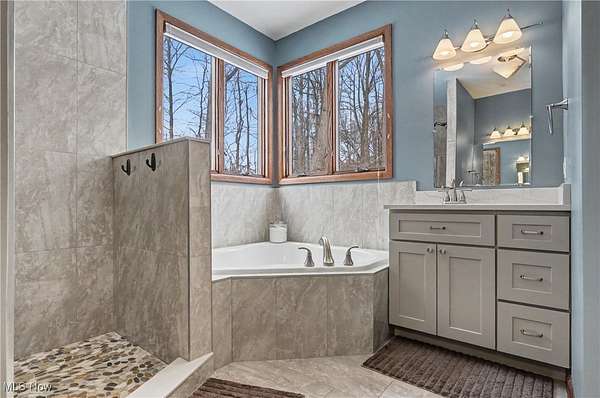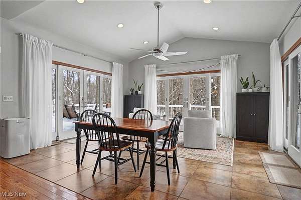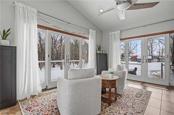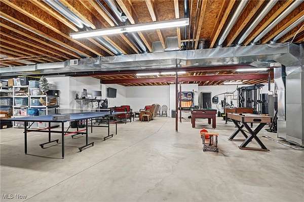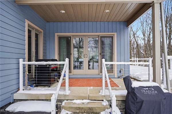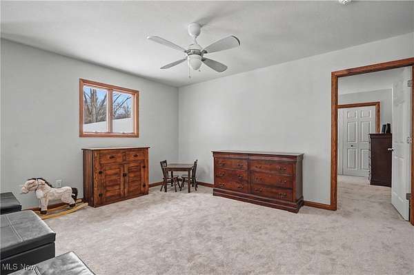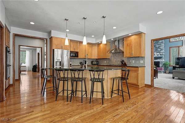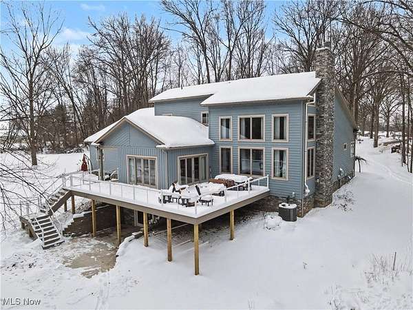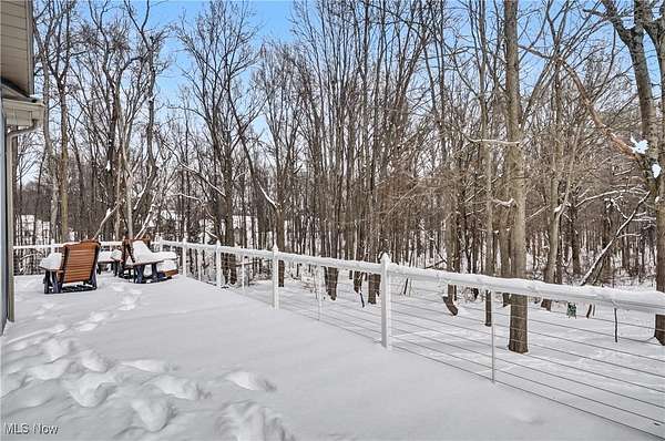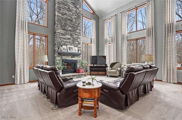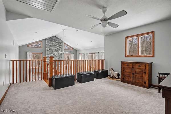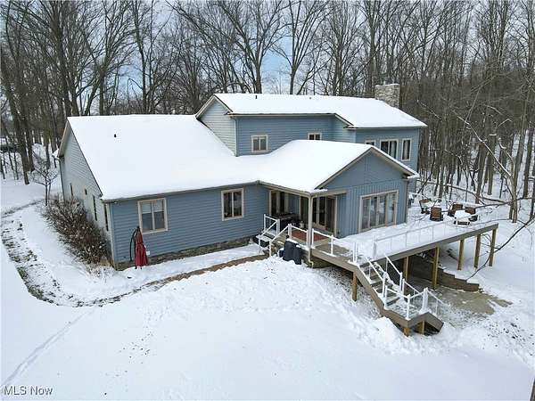 Absolutely stunning four-bedroom, 3.5-bath home in Canfield, Ohio, set on nearly nine private acres. The first floor features a spacious open-concept great room anchored by a floor-to-ceiling stone gas fireplace. The expansive kitchen offers custom cabinetry, granite countertops, a large granite island, brand-new stainless steel appliances, a breakfast area, and an inviting sitting space/sun room-perfect for everyday living and entertaining. The main level also includes a generously sized master bedroom with a private bath and walk-in closet, two additional large bedrooms, a full bath, a half bath, a convenient first-floor laundry room, and abundant closet space throughout. The second floor provides a private fourth bedroom, a third full bath, and a versatile loft area ideal for a home office or lounge. The walkout basement (2023) has been thoughtfully restructured for added functionality. Recent mechanical updates include a brand-new furnace (2025) and central air unit (2025), along with a newer hot water tank (2021). There has also been a new composite wood deck added in 2024, updates to the master bath & shower(2023), new kitchen backsplash (2023), wood flooring added in first floor office & bedroom (2023), new Kinetico whole house water filtration system(2023), New Amish Storage Shed(2024), custom drapery, & a fresh coat of paint. The exterior is Hardie Board & Stone.