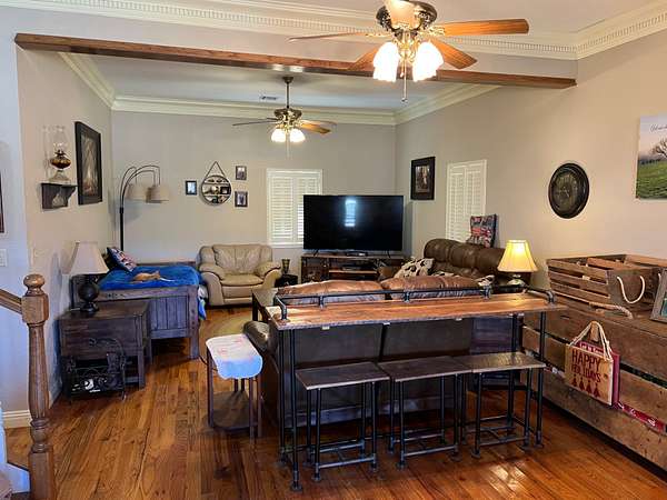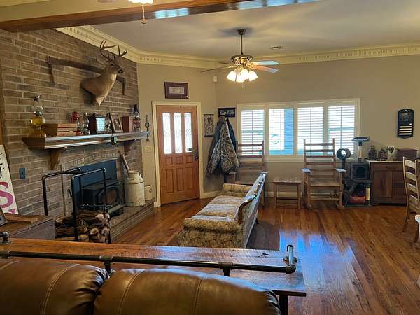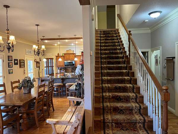 Executive home on 7.4 acres m/l with Flint Creek frontage. Owners relocating and motivated to sell!!! Bring your offers......and your creek chairs;). Welcome Home to the most beautiful 7.4 acres on Flint Creek. This 4 bedroom, 3 1/2 bath, 4243 sq ft home was completely remodeled in 2007. It features hardwood floors, 10 ft ceilings, plantation blinds, central vacuum system, Brinks security system, and beautiful crown molding throughout. The downstairs has an office/bedroom with French doors that open to the front porch, master bedroom, two full baths, fireplace with wood stove insert (gas hookup if desired), and tons of storage space. The dining area also features French doors that open to the front porch. The master bedroom has its own wet bar with mini-fridge, large walk-in closet, doggie door, French doors that open to the fenced in back yard (pet proof), and an immaculate master bathroom. The master bathroom features his and hers water closets, a jacuzzi tub, large walk-in shower, heated floors, and storage cabinets. Upstairs features a game room with pool table, 1.5 bath, storage rooms, and two bedrooms with a shared walk-in closet. Also on the property is a 50ft by 100ft shop with 18' sidewalls, vehicle lift, 120- and 240-volt receptacles throughout, living quarters, large gun safe, epoxy coated concrete floors, and two 14 ft overhead doors. The shop is insulated and heated. Store all your toys, run a business, or just have the shop you've always dreamed of. The 4000+ sq ft Kentucky style barn was built around 1917 and refurbished in 2007. It's all solid oak and has electric, water, sewer, and mirrored staircases to the hay loft. Four horse stalls have been partially converted to bathrooms and changing rooms for a future venue. So much potential! The property features Flint Creek flowing along the East boundary and a smaller creek flows from West to East along the North side of the property. The smaller creek flows to a rock wall bordered pond with a water fall before flowing into Flint Creek. The other side of Flint Creek is owned by the Cherokee Nation. The well on the property is artesian and has an overflow coming off the well wall that flows underground to Flint Creek. It also features a Hague Water filtration/softener system with reverse osmosis and UV light. Bring your pets, your livestock, your creek chairs, and your cooler. Did I mention the old Beck Mill sits directly across Flint Creek from the Barn?! Look up the "Going Snake District Massacre" on Wikipedia!