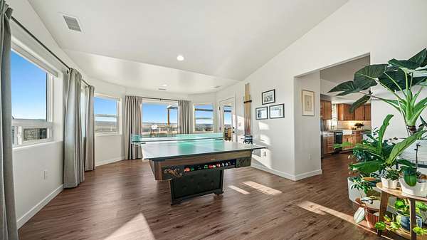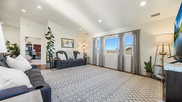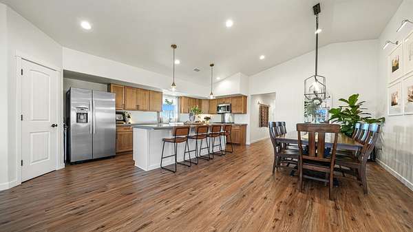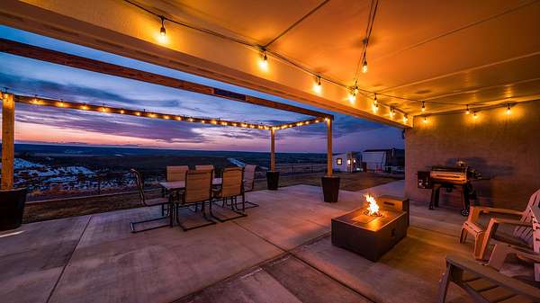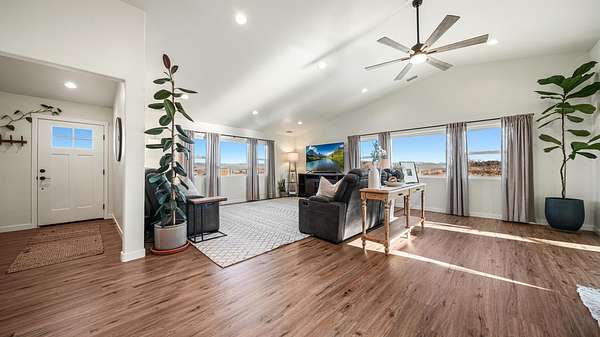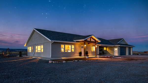 OPEN HOUSE SAT 2/7 12-2PM Welcome home to a thoughtfully crafted retreat perched on what the neighborhood fondly calls "The Island in the Sky," where an elevated setting delivers panoramic views and unforgettable sunsets. The home is located in a dark zone with minimal light pollution, providing excellent stargazing skies. From the moment you enter, a charming front nook offers a welcoming space for daily essentials, easily adaptable into a closet beside the home office. The residence opens up into a light-filled heart of the home featuring luxury vinyl plank flooring, soaring vaulted ceilings, modern lighting fixtures and an open-concept kitchen, dining, and living area designed to frame the scenery beyond. Strategically placed windows and living spaces invite the outdoors in, creating an ever-changing backdrop for both everyday living and special gatherings. Generously sized secondary bedrooms offer comfort and storage, while the expansive primary suite provides flexible space for your lifestyle, complemented by a beautiful bathroom featuring a walk in shower and an impressive walk-in closet. The wide and deep three-door garage accommodates up to four vehicles or recreational toys, and outside, covered front and rear patios extend your living space into the landscape around. With RV hookups on the north side and power ready for a future detached shop on the south, the 3.46 acres offer endless opportunity to personalize! This exceptional property is a rare Haven that blends the amenities of a neighborhood, but still allows for full country living. With minimal maintenance and endless possibilities to add-on, this home was built with you, the next owner in mind. Call us today to schedule your private showing!