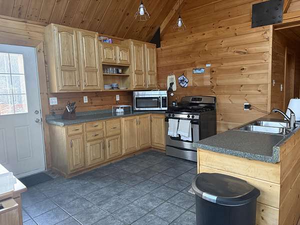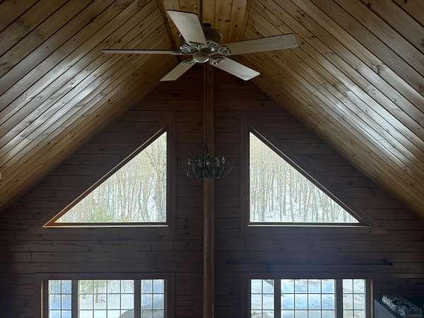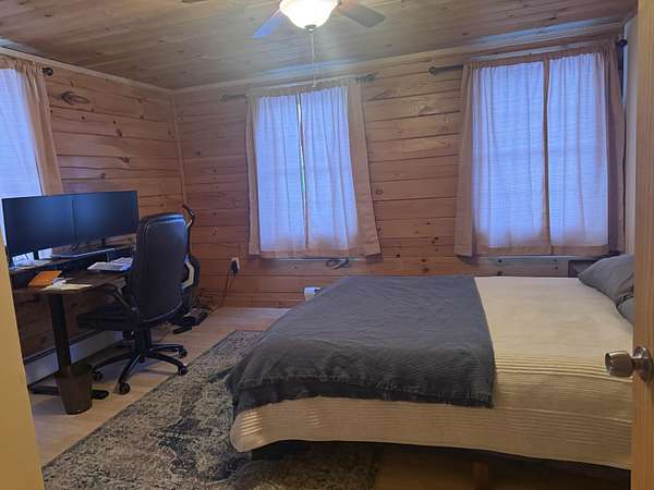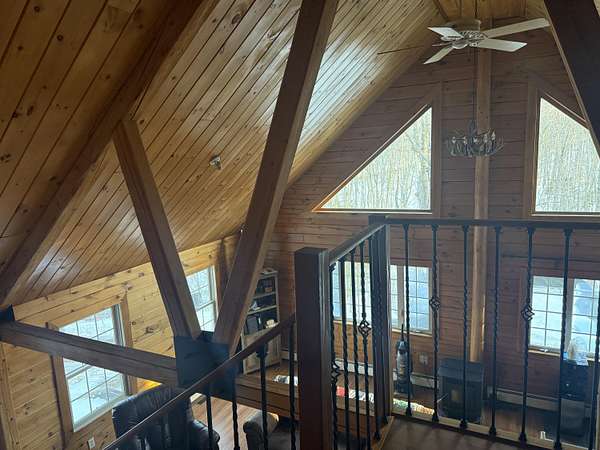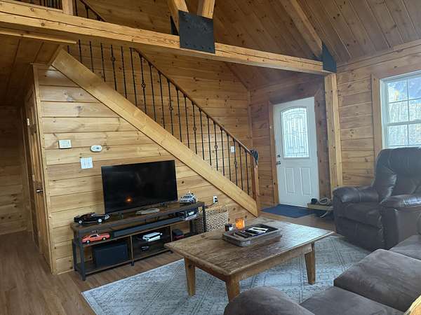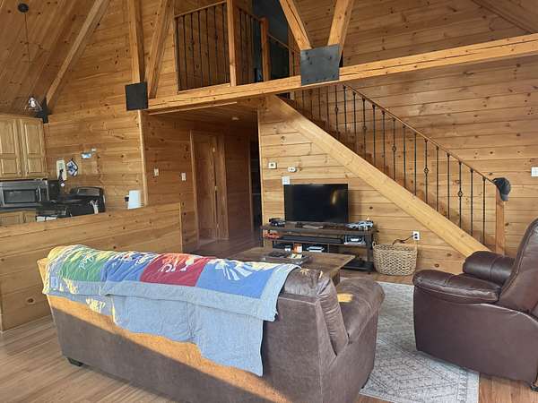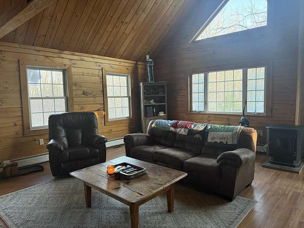 Est $2,438/moThis 8 acre parcel of land, sits high upon a hill, surrounded by quietness, only one neighbor. If your dream has always been to own a log home, this one is ready to be moved into, with 3 bedrooms, 3 baths, the possibility of the lower level to be an apartment. The space could very well be used as for in law suite, it has its own kitchen, bedroom bathroom, with direct entrance from ground level. The main level has a large open space for kitchen, dining room, living room with a pellet stove to create extra special warmth, off the kitchen to the back there is a large deck. Third level has a large bedroom and its own bathroom.