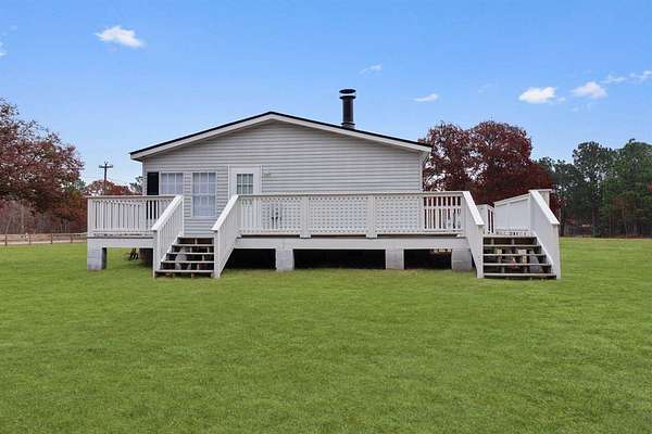 566 Centerwood Road offers 11.29 peaceful acres with a 3-bedroom, 2-bath home designed for comfortable country living. A full wrap-around deck provides wide open views. Inside, beautiful flooring runs throughout the home. The property features both a formal and informal living room, with the informal space offering sliding doors, a fireplace, and surround sound. The open kitchen includes an island, a dining area, and an eat-in space. The primary suite has two sets of French doorsa''one to the bedroom and one to the primary bath. The two guest bedrooms sit on the opposite side of the home and each includes a walk-in closet. This property offers space, privacy, and a functional layout, all within a short drive to Aiken. Virtual enhanced landscaping