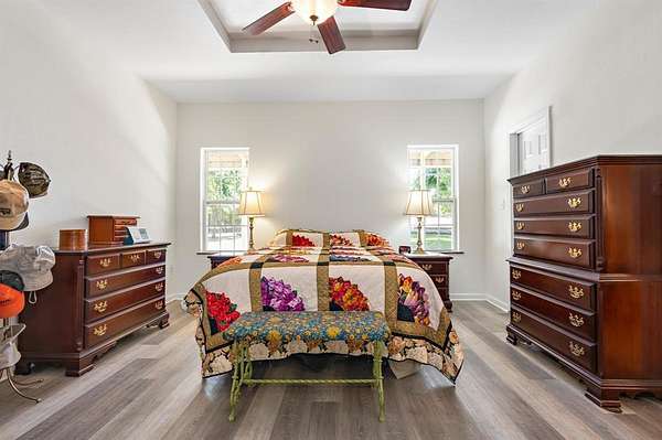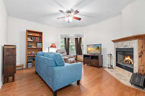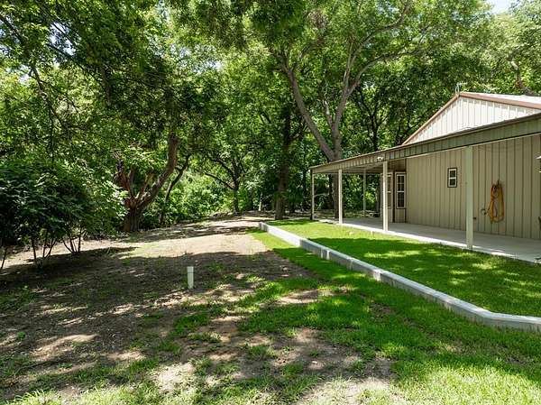 This property has it all! Be sure to ask your REALTOR(R) for the full list of features. Nestled on nearly 4 acres, this property is dotted with a variety of fruit trees, mature pecan and elm trees, and bursts into color each spring with blooming bluebonnets. A tranquil creek borders two sides of the land, adding to the serene atmosphere. Inside the main home, you'll find an abundance of storage including multiple closets, a custom built-in pantry, a cedar closet, and generous walk-in closets. A versatile spare bedroom with a bay window and gas fireplace can serve as a cozy den, office, or guest space. The inviting wraparound porch offers shaded space to relax with your morning coffee or enjoy a summer thunderstorm. The owners have made several recent investments totaling more than $60,000 in cost--new concrete porch surrounding the home on 3 sides, a retaining wall with piers every 10 feet, fresh sod, trimmed trees, reset septic tank--all aimed at enhancing the home's beauty and providing long-term value. The impressive 2,400 sq ft shop includes a 1-bedroom, 1-bath living space (approx. 500 sq ft) with covered parking. Perfect for extended family, guests, or rental income, this additional unit has been freshly painted, includes all appliances, and is truly move-in ready. An optional 1.92-acre parcel across the road is also available for purchase. While the sellers intend to sell it separately, they are open to negotiating a discounted price for the homebuyer.