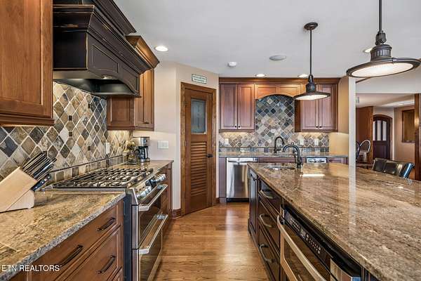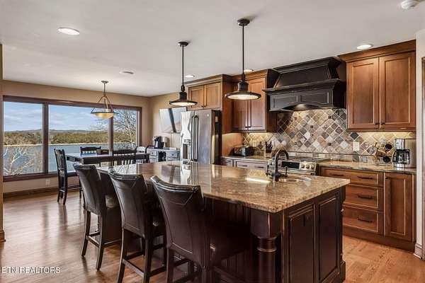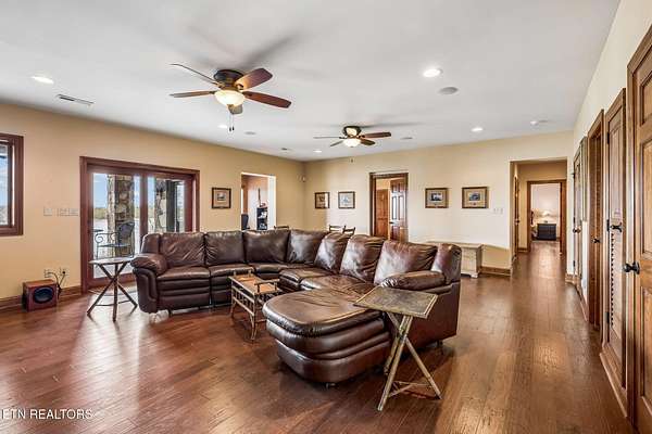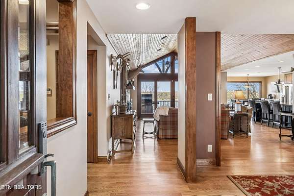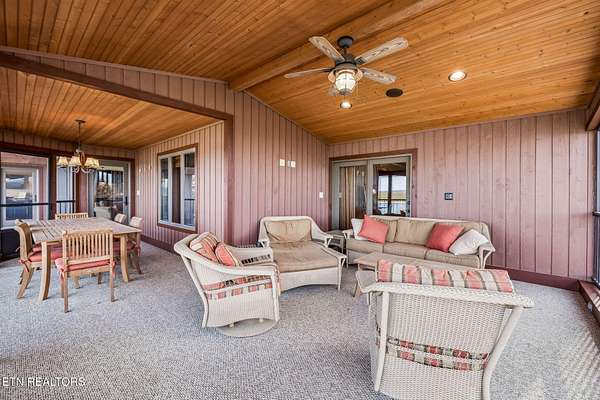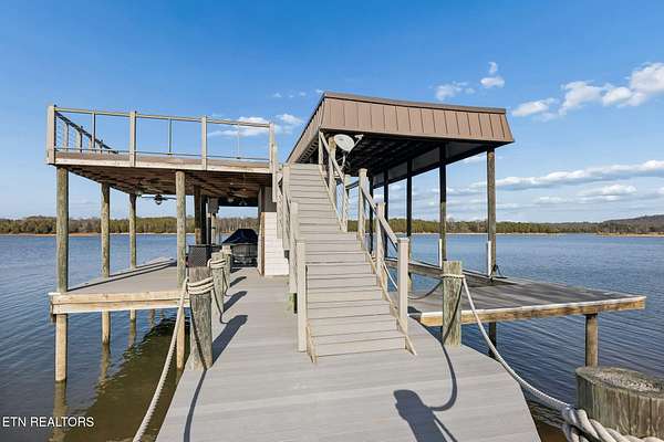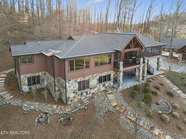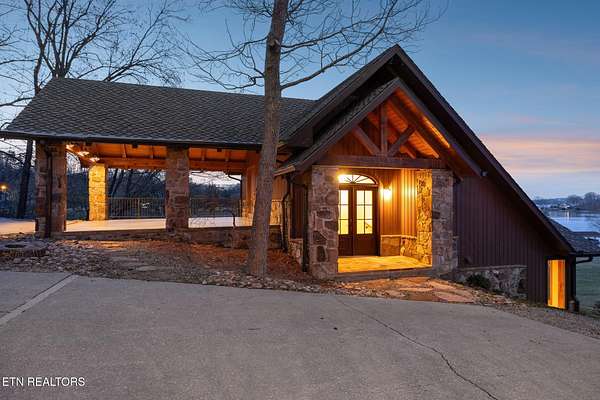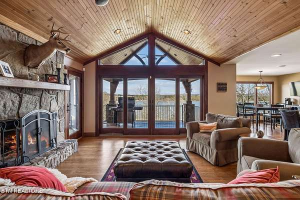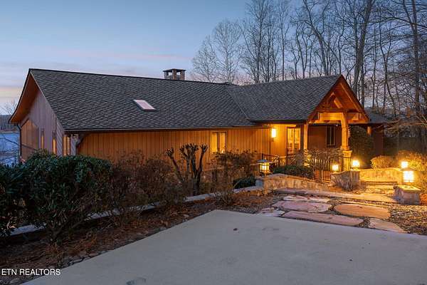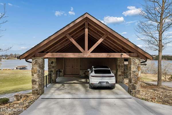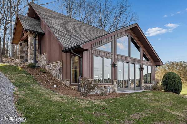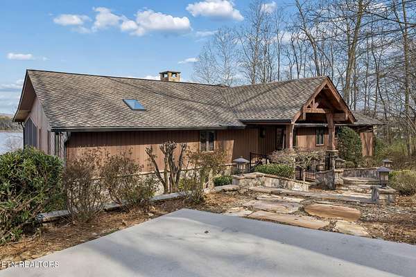 Welcome to an extraordinary lakefront estate at 566 Island View Drive in Friendsville, where luxury, privacy, and the natural beauty of East Tennessee come together on 5.36 breathtaking acres along Fort Loudoun Lake. With over 220 feet of level lake frontage and exceptional indoor and outdoor living spaces in two buildings, this remarkable property offers a rare opportunity to own a private waterfront retreat designed for both refined everyday living and unforgettable entertaining. The main residence offers more than 4,700 square feet of thoughtfully designed living space, completely remodeled in 2011 by the renowned local architect Bill Andrews, featuring 5 spacious bedrooms, 5 full bathrooms, and 2 half baths. From the moment you arrive, the home welcomes you with warmth and timeless appeal. Rich hardwood flooring flows throughout the main level, while expansive windows frame stunning lake views and fill the home with natural light. At the center of the home is the inviting living room, highlighted by a striking wood-burning stone fireplace that creates a warm and elegant focal point. This space was designed for gathering, whether hosting friends and family or enjoying a quiet evening while taking in the peaceful lake setting. The kitchen is both beautiful and highly functional, featuring high-end granite countertops, abundant cabinetry, and generous countertop space ideal for cooking, entertaining, and everyday use. Just off the kitchen is a separate breakfast room overlooking the lake, creating a perfect space to serve meals while enjoying the water views. A formal dining room near the front entrance provides an elegant setting for hosting holiday meals and special occasions. From the kitchen, the home flows seamlessly into its outdoor living areas. Step onto the covered porch with a vaulted ceiling equipped with a gas hookup for a grill, ideal for outdoor cooking and gatherings. This space continues into a large screened-in deck, offering a peaceful place to relax and enjoy cool lake breezes and panoramic waterfront views. The primary suite on the main level provides a spacious and comfortable retreat. The well-appointed primary bathroom features dual sinks, extensive cabinetry, a makeup counter, a jetted soaking tub, and a tiled walk-in shower with a rain shower head, creating a spa-like atmosphere designed for relaxation and convenience. One of the most remarkable features of this home is that all five bedrooms enjoy beautiful views of Fort Loudoun Lake, allowing both residents and guests to wake up each morning to the tranquil beauty of the water. The home was carefully positioned to maximize its incredible lakefront setting from nearly every angle by Bill Andrews. The lower level of the home provides an outstanding space for entertaining and recreation. The finished basement includes a large den area perfect for hosting gatherings, movie nights, or game-day events, creating an ideal secondary living space for family and guests. This level also features two additional bedrooms, a private office, and 2.5 bathrooms, providing excellent accommodations for visitors, extended family, or multi-generational living while maintaining privacy from the main living areas. The home is equipped with geothermal heating, providing efficient and reliable warmth during cooler months. The property also benefits from two water sources:public water and a private well, along with an irrigation system that services the yard and flower beds, helping maintain the beautifully landscaped grounds. Adding tremendous versatility to the estate is the second building, built in 2014, which offers more than 1,000 square feet of finished space. This structure features a large fitness center with stunning lake views, a full bathroom, workshop space, a conditioned storage room, a two-car carport, and a one-car garage. It provides the perfect space for a private gym, guest retreat, studio, hobby area, or future guest residence. The 5.36-acre property is ge