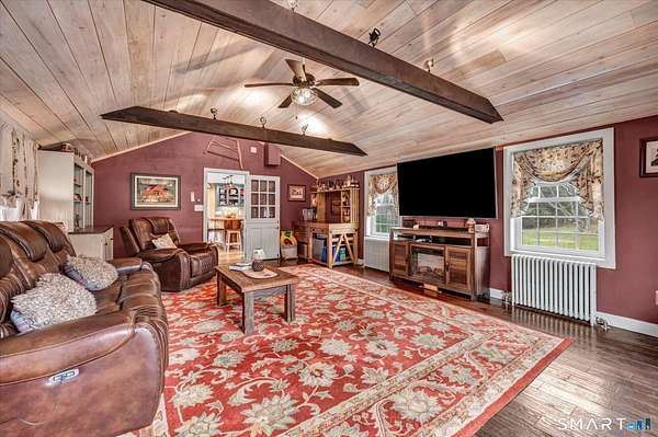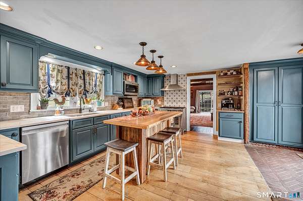 A Vintage Revival! Circa 1756 Historic Saltbox on 7 acres of level, sunny, totally useable acres in the Litchfield CT is completely renovated top to bottom; this is a home that marries the best of both the past and the present for modern living. Preserving the antique details and charm with new baths, a new kitchen and four new out buildings to the property the result is a home that's simple, clean, cozy and encourages outdoor hobbies/activities and offers endless live/work possibilities in a quiet country setting. There are exposed beams, hardwood floors throughout, multiple fireplaces, Plaster walls. Off the side of the house a wonderful stone terrace for entertaining complete with a pergola and a wood burning pizza oven. Take in the views of the open meadow and star glaze at night. A two car garage with gym area above offers tons of storage. A large post and beam barn for equipment could become a studio or guest house. There is even a chicken coop, an Orchard with a variety of apple trees, peach, cherry, and pear trees as well as 600+ different varieties of Xmas trees, a greenhouse, a chicken coop and a pond. There is room for a pool. This is an all American Classic only better!
