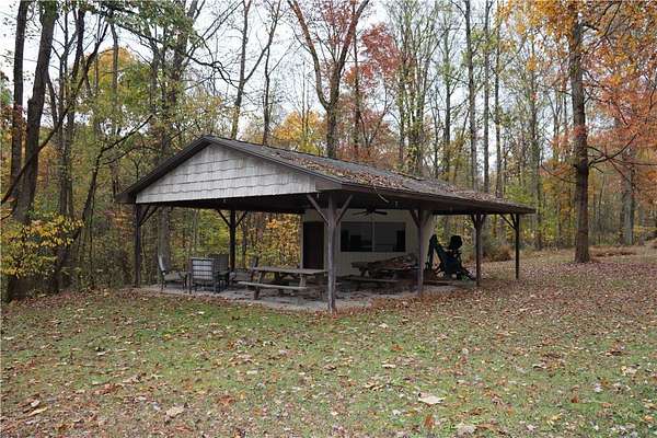 Est $3,186/moBrick and vinyl cape cod in private setting on 25 acres. Main level primary bedroom with its own full bath. Main level Sunken Living Room with stone fireplace/Cathedral Ceiling and Family Room with woodburner on brick hearth/Cathedral Ceiling. Large 3 plus car attached garage. The Area containing the second kitchen and third full bathroom is accessed from within the attached garage. Picnic pavilion, Free gas provided to the house. Property includes 3 additional contiguous un-improved parcels, bringing total parcel size to approx. 29 Acres. Will consider selling Individual parcels separately.