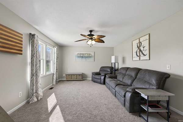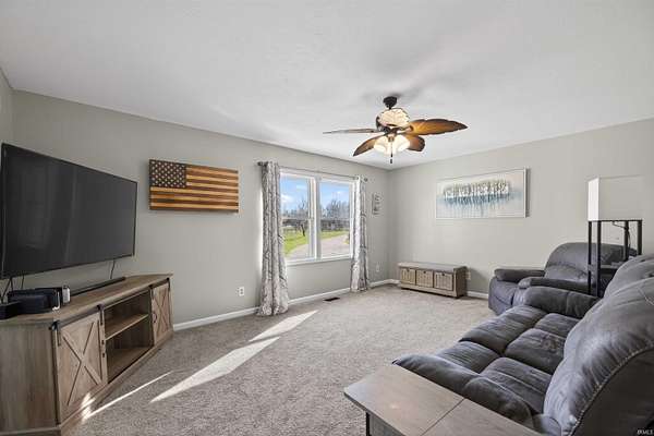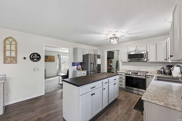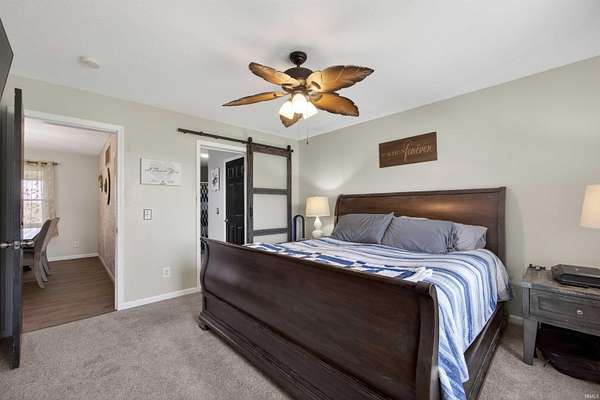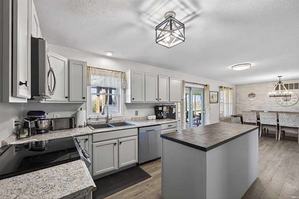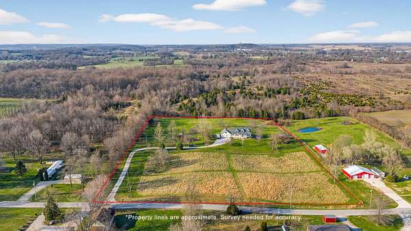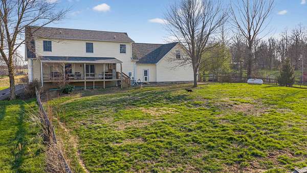 RURAL. PEACEFUL. SCENIC. This spacious SIX bedroom, 3.5 bathroom home sits on 8.63 acres, offering privacy, room to grow, and beautiful natural surroundings. A long driveway welcomes you to the home, leading to a beautiful front porch, perfect for relaxing and enjoying the peaceful setting. Step inside to a welcoming foyer. To the left, you’ll find a spacious living area that flows into the kitchen, creating a comfortable and functional layout. Just off the dining area is the primary suite, featuring a walk-in closet and convenient access to a half bath nearby. The main-level laundry room offers added convenience and provides direct access to the 2-car attached garage. Upstairs, you’ll find three additional bedrooms and a full bathroom, offering plenty of space for family or guests. Thoughtfully designed, the home offers multiple levels of living space to suit a variety of needs and lifestyles. The walkout basement expands your living space with a large family room complete with a fireplace, two additional bedrooms, a full bathroom, and an office space. A sliding glass door off the kitchen leads to the back porch, perfect for enjoying the outdoors. Additional features include a 28' x 22' outbuilding, a 7' x 7' utility shed, and plenty of acreage to enjoy nature, recreation, or future possibilities. Home comes complete with kitchen appliances, washer, and dryer, and has the possibility of qualifying for 100% USDA financing. Some of the most recent improvements include: siding washed, painted exterior door white, and a new roof was installed last week. Additional updates include new flooring throughout most of the home (all carpet and water-resistant vinyl flooring) in 2022, kitchen cabinets painted with additional cabinetry and a butcher block island added in 2022, and a new master bathroom vanity and mirror installed in 2024. Utilities are provided by: Orange County REMC, Patoka Water, and Orange County Fiber. With generous living space, beautiful acreage, and a flexible layout, this property offers the perfect blend of comfort, privacy, and opportunity.