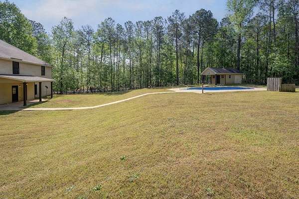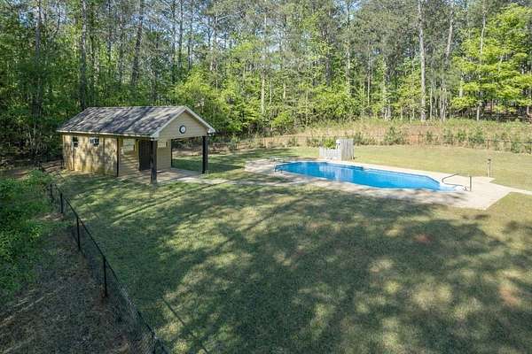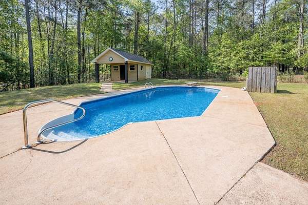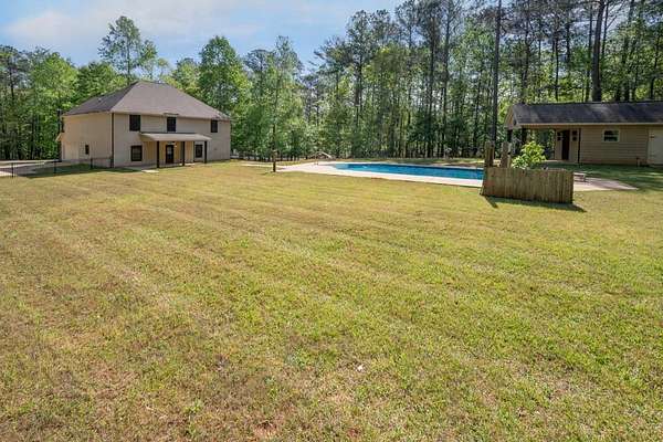Located in the gated Piedmont Lake community in Pine Mountain GA, this 4 bedroom, 3.5 bath home sits on 2 acres and offers a functional layout with room to spread out. The main level includes a spacious living room with fireplace, dining room, kitchen, half bath, and primary bedroom with private bath. Upstairs features a large secondary living or recreation area, 3 additional bedrooms, and 2 full baths including a shared bath between two bedrooms. Outdoor living includes a covered back porch overlooking an in-ground pool and a detached storage or recreation building that can serve as a pool house. The fenced backyard provides a usable outdoor space while the property extends beyond the fence line. Piedmont Lake amenities include a private lake for fishing and non-motorized boating, along with a community pool, tennis courts, and pavilion. Located in Harris County GA with convenient access to Pine Mountain, Columbus GA, and Fort Benning. *360 Tour Available*