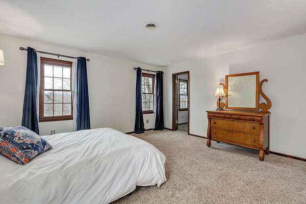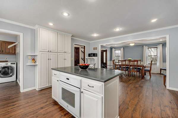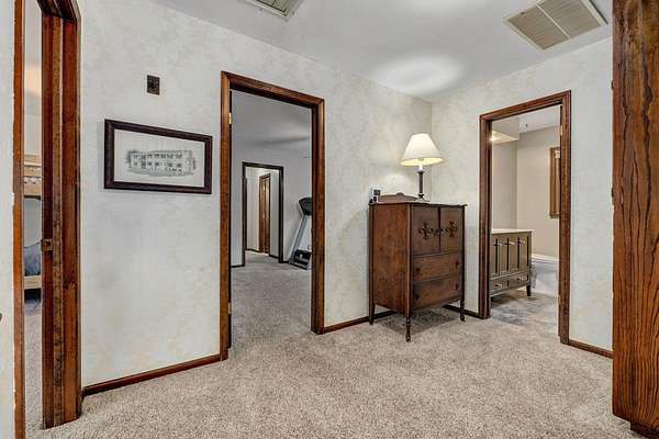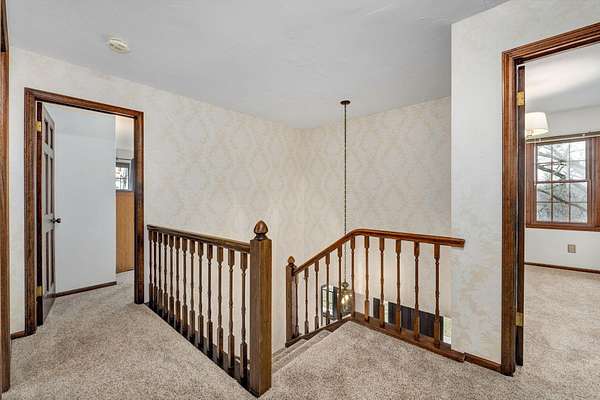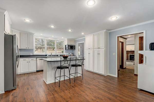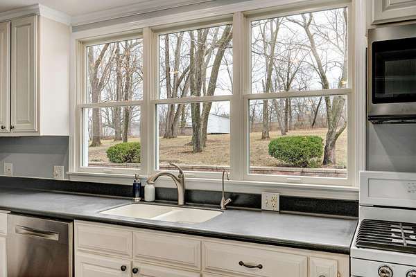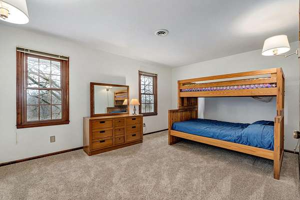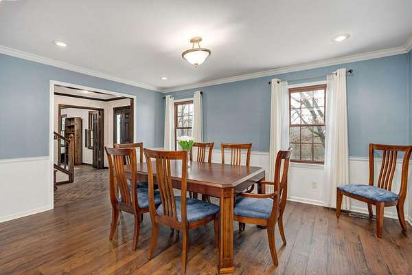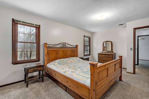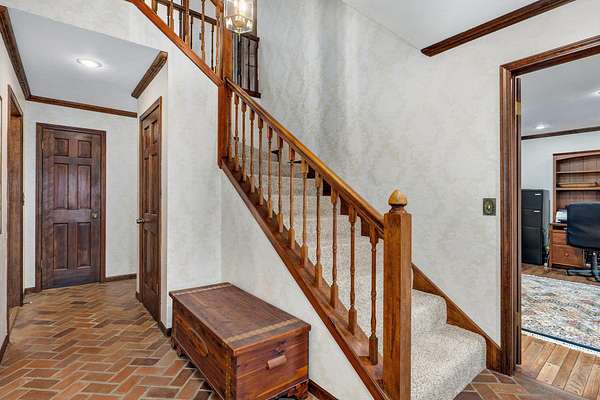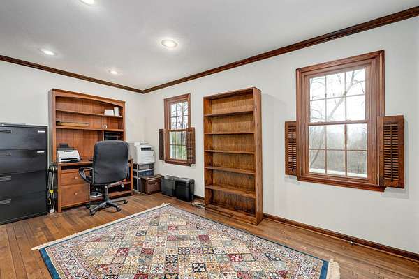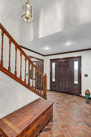 Welcome to this stunning two-story Colonial home located in desirable Wildwood Estates! Situated on a breathtaking nearly two-acre treed lot adorned with gorgeous dogwood trees and updated landscaping, this property offers timeless charm, generous space, and exceptional functionality.Step inside to a foyer featuring a beautiful staircase and herringbone brick flooring that sets the tone for the home's classic character. Detailed crown molding and quality finishes flow throughout. The inviting living room showcases a warm brick fireplace, perfect for cozy evenings and gatherings.The updated kitchen is designed for both everyday living and entertaining, offering solid surface countertops, a spacious island, and upscale appliances. Ample cabinetry and prep space make this kitchen as functional as it is stylish. This home also offers a formal dining room that is being used now as an office. With 5-6 bedrooms, 3 full baths, and 2 half baths, there is room for everyone. The primary suite includes an attached office area, his and hers closets, and a beautifully updated bath, creating a true private retreat.One of the home's most unique features is a separate private living area complete with its own staircase--ideal for multigenerational living, guest quarters, or a private workspace.Outdoor living is just as impressive, featuring a huge patio with gas already run for a grill--perfect for entertaining. A large shed provides additional storage, and the lush yard offers space to relax, garden, or play. This home has it all including a laundry chute! Located just minutes from Springfield Lake and the areas trail system, you'll enjoy easy access to walking, biking, and hiking while still being close to everyday conveniences. Don't forget your kayak!This exceptional home combines classic Colonial elegance with modern updates in an unbeatable location and price!