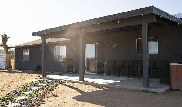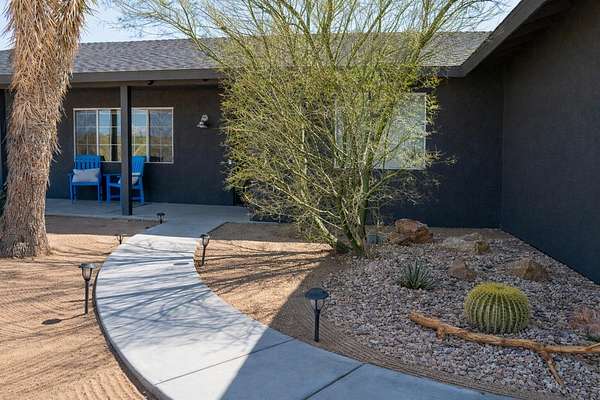 Wonderful Custom Home on 5 Usable Acres with Mountain Views, PAID Solar & Fully Furnished Welcome to this beautifully maintained 3-bedroom, 2-bath custom home, built in 2006 by Stuart Kirk. Situated on a desirable 5-acre corner lot, this flat and fully usable property offers sweeping mountain views and exceptional potential for equestrian use. With ample space to add a barn, arena, round pen, and paddocks, it's ideal for horse owners or anyone seeking wide-open land with endless possibilities. Inside, the home features a bright, open floor plan with abundant natural light throughout. The primary suite includes a spacious walk-in closet with built-ins and an en-suite bathroom with dual sinks and a step-in shower. The additional bedrooms are generously sized and highlighted by charming box windows. This property is being sold fully furnished, making it truly turnkey for personal enjoyment or an excellent short-term rental opportunity. Outdoor living shines here with a fire pit, cowboy pool, hammocks, and a hot tub-perfect for relaxing under the stars and embracing the peaceful desert landscape. Additional features include a finished and insulated 2-car garage, a circular driveway, and a fenced backyard for privacy and convenience. Located in a quiet and serene area, this home reflects true pride of ownership and is move-in ready. Buyer to verify all information, permits, square footage, lot size, zoning, intended use, and any short-term rental regulations to their own satisfaction. All information is deemed reliable but not guaranteed. Buyer to conduct their own due diligence with appropriate professionals, and to hold agent and broker harmless from any discrepancies or claims arising from reliance on the information provided.