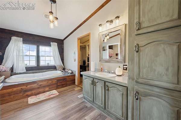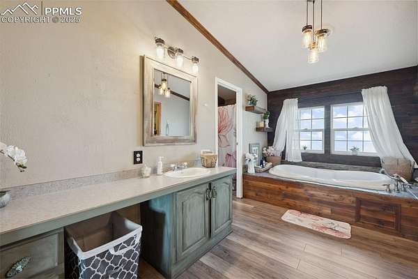 Country living at its best in this refreshed modern modular home, nestled on nearly 3 gorgeous acres with incredible views of Pike's Peak. Enjoy one-level living with a spacious and welcoming kitchen that features sleek countertops, attractive cabinetry, stainless steel appliances, and plenty of counter space-perfect for cooking and gathering. The home is filled with natural light along with tasteful updates in every room. The eat-in kitchen and separate dining room offer flexible spaces for casual meals or entertaining. The large, inviting family room is ideal for relaxing or hosting. Each bedroom has its own private bathroom, and there's a convenient powder room for guests too. Step outside to find a detached 3-car garage, complete with kennels and extra storage space attached to the rear-perfect for pet lovers or outdoor enthusiasts. With wide-open views, peaceful surroundings, and modern comforts, this one is truly a gem.