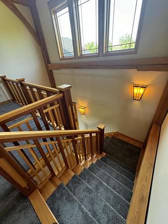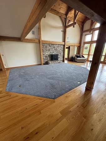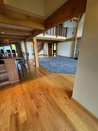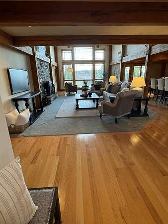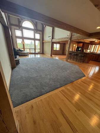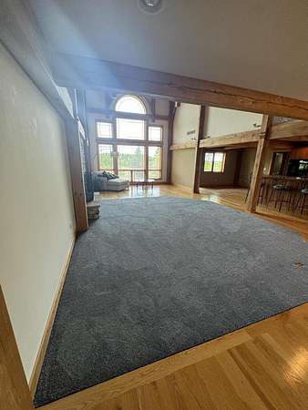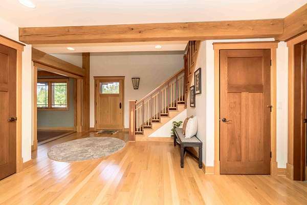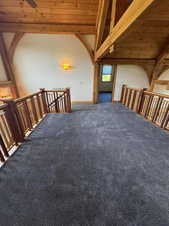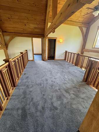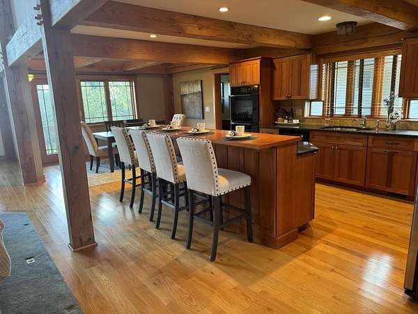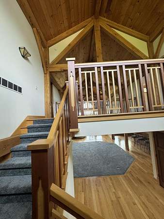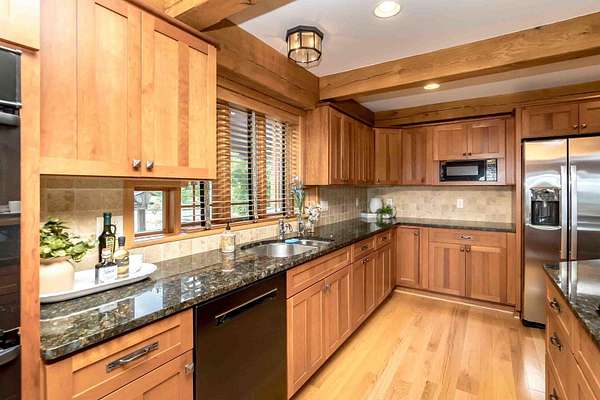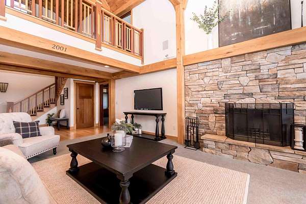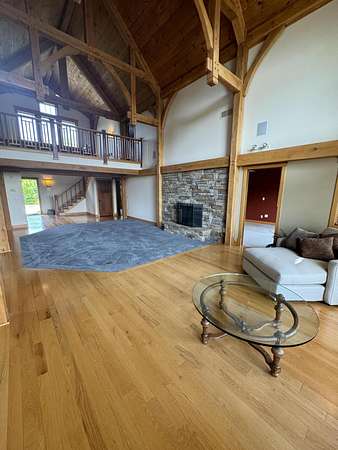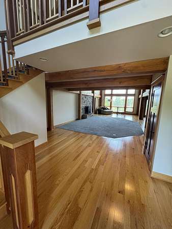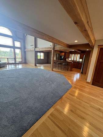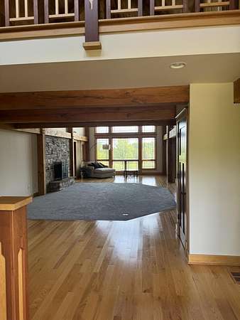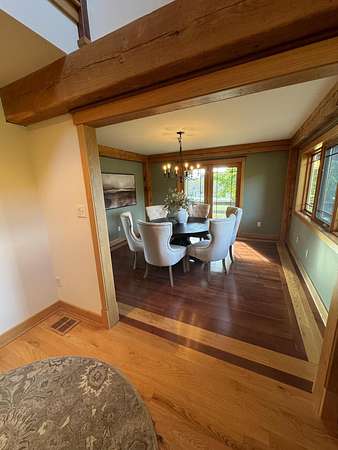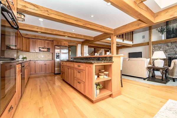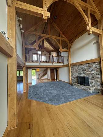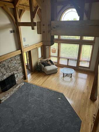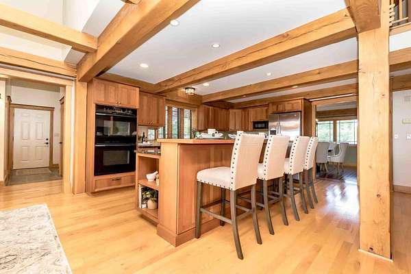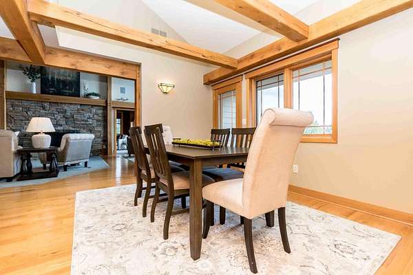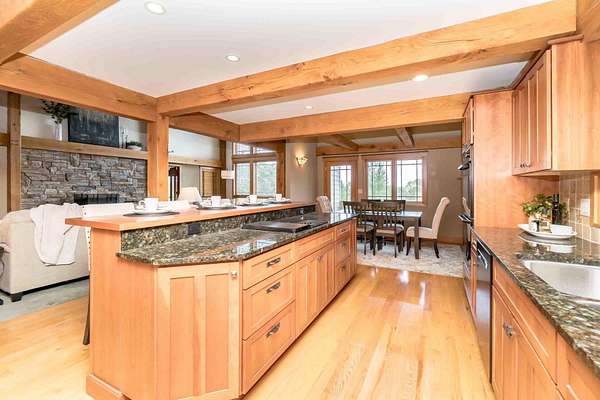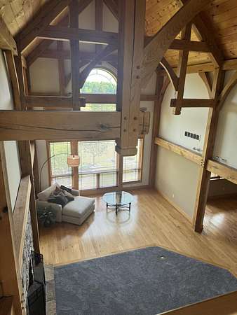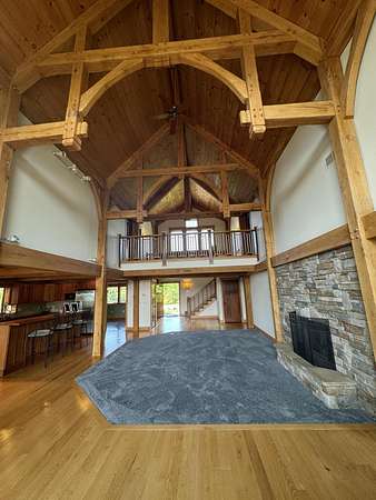 Nestled on a sprawling property, this stunning Timber-frame home offers elegance and modern comfort. With its signature architectural details, exposed beams, wide overhangs, and handcrafted woodwork, this residence exudes charm and craftsmanship. The expansive lot is a nature lover's paradise, offering privacy, lush landscaping, room for horses (or other animals) and plenty of space for outdoor living. Warm hardwood floors and large windows that flood the space with natural light. The gourmet open kitchen features a large center island, a cozy breakfast nook and a formal dining room. The spacious living areas, complete with a stone fireplace and coffered ceilings, create an inviting atmosphere for family gatherings. See new carpet installed! Scroll for updated pictures at the end.