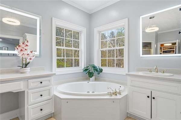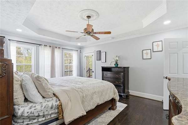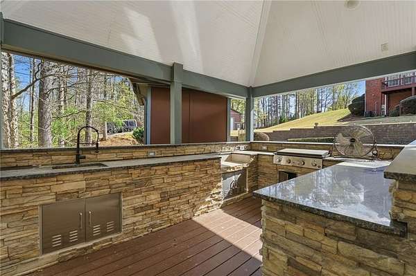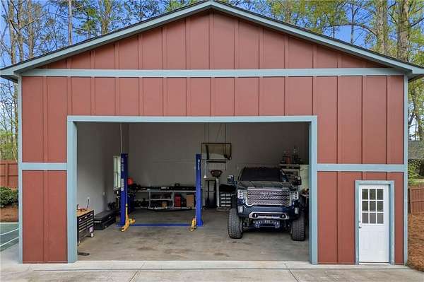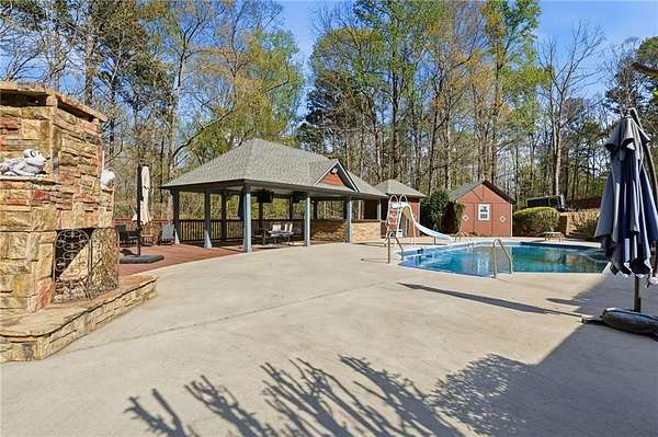 Stunning all-brick home ready to welcome its next family! This beautifully maintained home features 5 bedrooms, including a spacious primary suite on the main level, three additional bedrooms upstairs, and a private bedroom with its own full bath in the finished basement-ideal for in-laws or guests. The fully finished basement is designed for both relaxation and entertainment, offering a large open living or game room area, a bar space, private gym, dedicated office, and ample storage. Step outside and experience your own private retreat on 5.54 acres with no HOA. The property is surrounded by manicured landscaping and offers exceptional privacy. Outdoor living shines with a true entertainer's paradise featuring a basketball court, outdoor fireplace, outdoor kitchen, pool, and convenient pool bath with shower-perfect for enjoying summer to the fullest. Car enthusiasts will appreciate the detached shop, complete with a car lift (10,000 lb capacity), DeWalt compressor, and TV setup. In addition, the home offers a 3-car garage with a brand-new epoxy floor. Additional highlights include a brand-new roof, recently serviced systems, and pride of ownership throughout. Conveniently located just minutes from shopping, dining, mall, and I-20, all within a sought-after school district. This is a must-see property offering space, functionality, and lifestyle all in one!