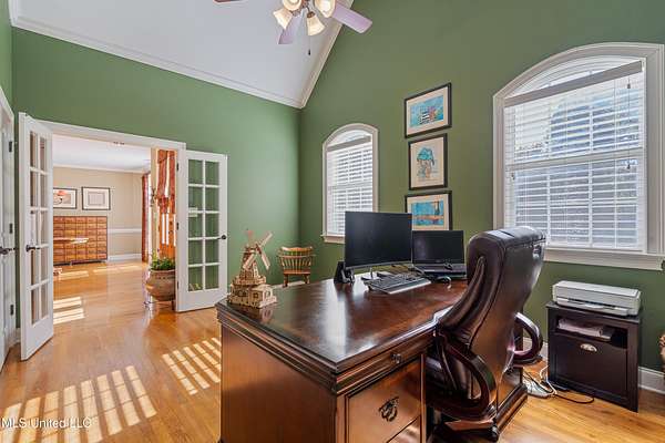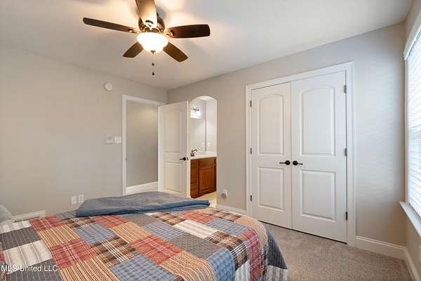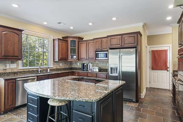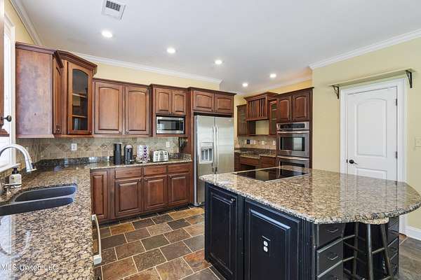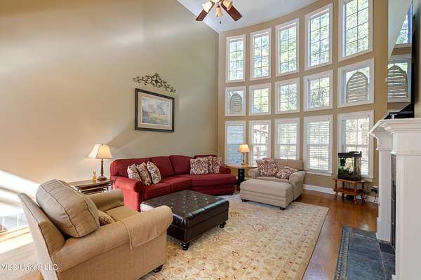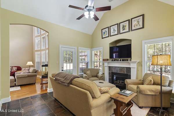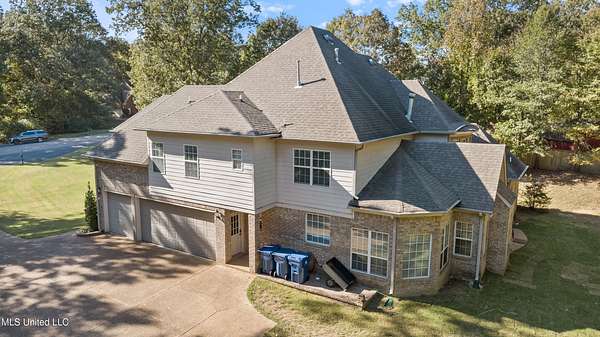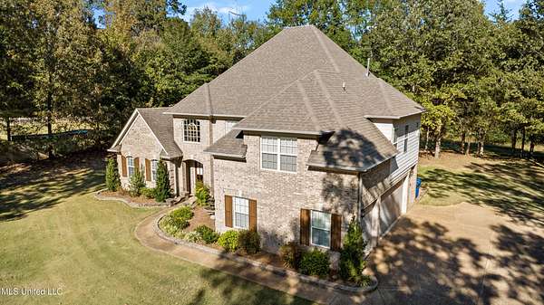 Welcome home to Miller Station! This custom-built home offers a combination of everyday luxury, privacy, and convenience to Collierville or Olive Branch. *OPEN HOUSE, SATURDAY, 11/8, 12-2 PM!* Step past a beautiful fountain in the front of the home and through the French doors into a grand entryway with soaring ceilings and an impressive chandelier. The catwalk overhead and the stunning window feature wall overlooking the treed backyard are sure to delight you. You will find the formal dining room to your right and the oversized living room with a gas fireplace ahead, all with real hardwood floors. Go ahead and decide where the Christmas tree goes--there are plenty of wonderful options! The kitchen offers natural slate flooring, an eat-in space for a second table, an oversized island with space for bar stools, a glass cooktop, double ovens, ample granite countertops and cabinet space, as well as a custom shelved pantry and a desk area. The comfortable hearth room off the kitchen provides another gas fireplace and a nice, informal space to relax. On the other side of the living room, you will find an updated powder room and the primary suite. The primary bedroom offers new carpet, fresh paint, a tray ceiling, and a ceiling fan. The primary bathroom was completely renovated in 2022 and is sure to be your oasis for relaxation with a large corner shower, soaking tub, separate vanities, 2 custom walk-in closets, and a water closet. An interesting feature about this floorplan is a connected quarter bath/bar space between the primary bedroom and the second downstairs bedroom/office. This bedroom offers French doors and a closet, making it a bright space for a bedroom or office. Up the grand double staircase (with under stair storage), you will find three additional bedrooms AND a bonus room (that's right--this home offers 5 bedrooms *and* a true bonus room). The entire upstairs has brand new carpet and the bedrooms are freshly painted. One of the bedrooms has a full handicap-accessible bath and the other two bedrooms are connected with a jack-and-jill bathroom. The bonus room offers vaulted ceilings and all of the upstairs bedrooms have ceiling fans. You will also appreciate the storage of a floored attic walk-out space across the catwalk (this space could be finished out) as well as a pull-down attic entry with new stairs for access. There is a central vacuum system and a central intercom system throughout the house. Outdoors, you will appreciate the trees and large lot that provides a sense of privacy, even in a neighborhood. The garage door is new. Soffit lights in the front of the home light up the exterior at night. There is also a firepit, a covered deck area, a raised garden bed, and a back patio for grilling and entertaining. The sellers mentioned they enjoy watching the wildlife in their backyard. The current owners have taken meticulous care of this home, including installing new HVAC systems (3 & 7 years old), new carpet throughout, new baths downstairs, freshly installed sod in the backyard, new garage door, custom closet shelving, and fresh paint in many spaces. The kitchen refrigerator and the washer/dryer will convey with the home, making this one completely move-in ready. You could be HOME by Thanksgiving! Call your favorite agent and schedule a showing TODAY!