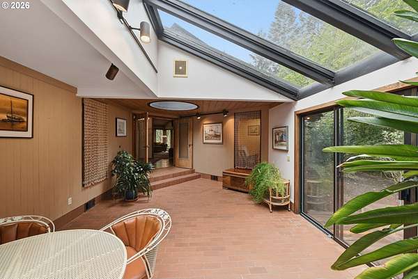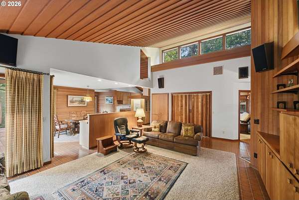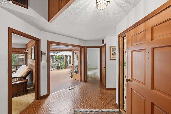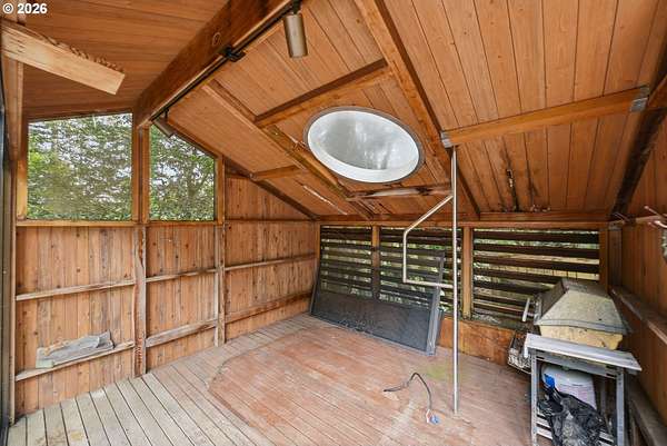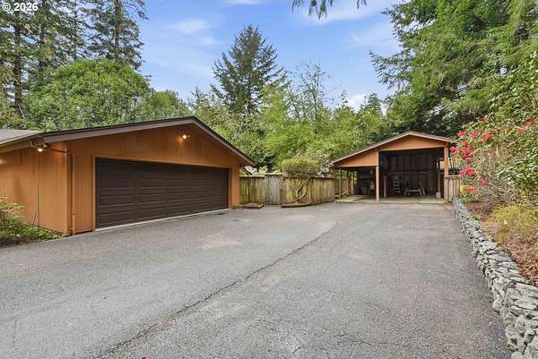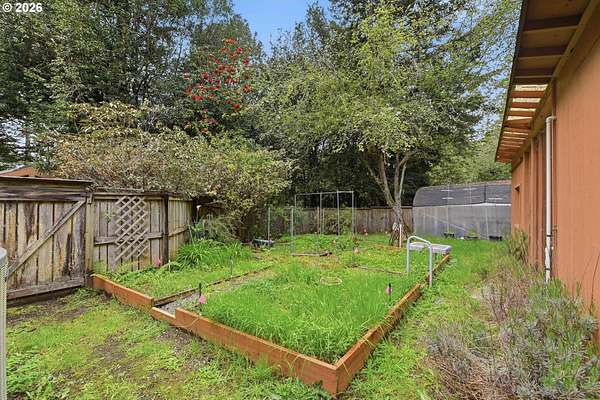 Welcome to your own private retreat in Coquille. This spacious 2,372 sq ft home offers a thoughtful layout, quality features, and beautifully maintained grounds designed for comfortable living and everyday enjoyment. Inside, you'll find 3 bedrooms and 2 bathrooms, featuring stunning vaulted ceilings. The open-concept design creates a natural flow between the main living areas, making the home feel both inviting and functional. The primary suite is well-appointed with a walk-in closet and an ensuite bathroom that includes dual sinks, plus a toilet and bidet. A standout feature of the home is the expansive sunroom, filled with natural light and offering a peaceful space to relax, entertain, or enjoy views of the surrounding property year-round. Additional highlights include a 2-car attached garage (With a brand new garage door) and a large detached RV storage building, providing ample room for vehicles, recreational equipment, or extra storage. Outside, the property truly shines with mature landscaping, established garden beds, and a greenhouse-ideal for those who enjoy gardening or simply appreciate a well-cared-for outdoor setting. This property offers the perfect blend of space, functionality, and outdoor charm, all in a desirable Coquille location. Call your Realtor and schedule a showing TODAY!