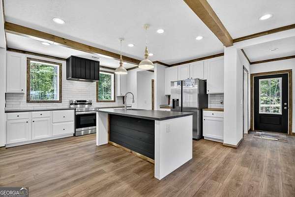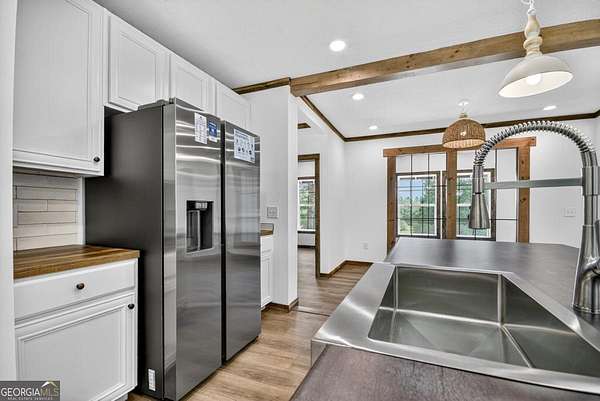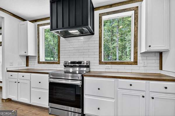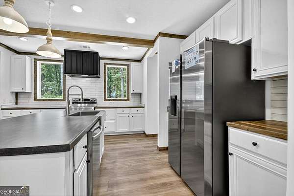 This brand-new modern farmhouse ranch offers the best of style, space, and serenity. Sitting on a generous, level lot surrounded by mature trees and panoramic mountain views, it combines country charm with well-crafted modern details throughout. The crisp white exterior, black awnings, and durable metal roof set the tone for an inviting, low-maintenance design. Inside, enjoy a thoughtfully designed open floor plan featuring luxury vinyl floors, bright white walls with warm wood trim, and a cozy great room with decorative ceiling beams. The kitchen is made for both entertaining and everyday living, complete with custom cabinetry, upgraded stainless steel appliances, apron sink, large island, and bar seating. A butler's pantry and mudroom entry-complete with storage and a seating area-add both functionality and style. The sunroom at the front offers extra space to unwind or host guests, while a dedicated office/hobby room provides flexibility. The spacious primary bedroom offers a spa-inspired ensuite bath with a stand-alone tub, walk-in shower, double vanity, and a custom walk-in closet that might just be more organized than your best intentions.Two roomy guest bedrooms share a full bath with a garden tub and plenty of elbow room. Smart home features add convenience, and the level driveway gives easy access with ample parking. You'll be just minutes from the charm of Blue Ridge and McCaysville, with trails, orchards, rivers, and everyday essentials close at hand... You can expect to save up to 50% on utility costs with this home's energy efficient design. Not to mention - this home's warranty does not expire until May of 2030! An abundance of extras such as custom tile backsplashes, storage building...a must see for full time home, getaway, or investment...