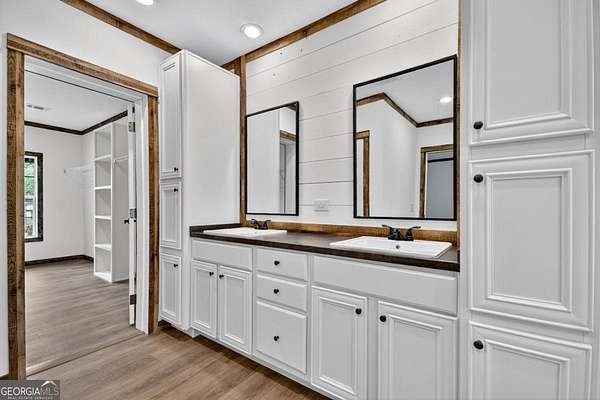 - Beamed Ceilings, Double Vanity, Entrance Foyer, Master On Main Level, Separate Shower, Soaking Tub, Split Bedroom Plan, Split Foyer, Tray Ceiling(s), Walk-In Closet(s)