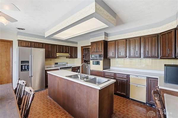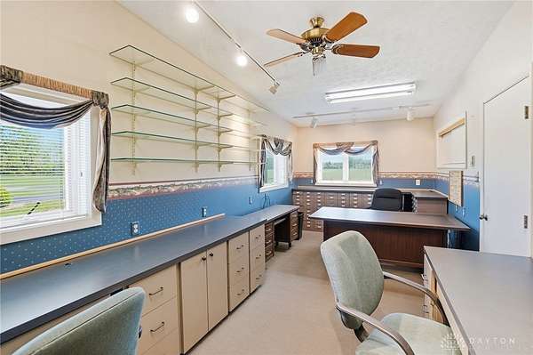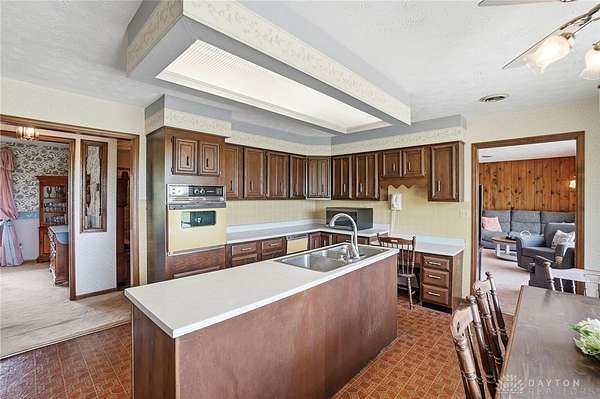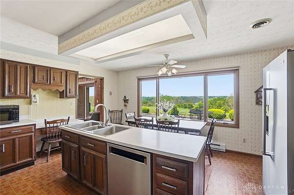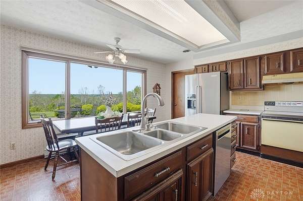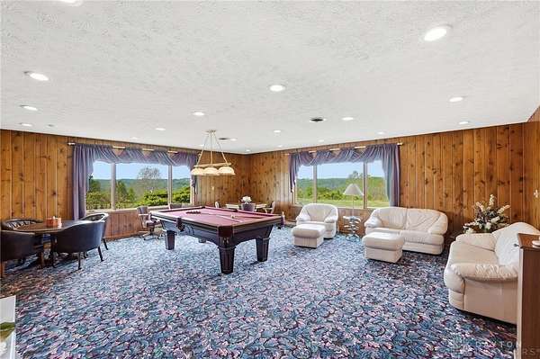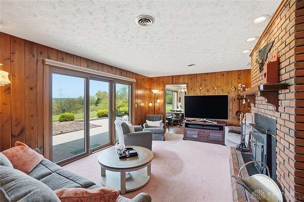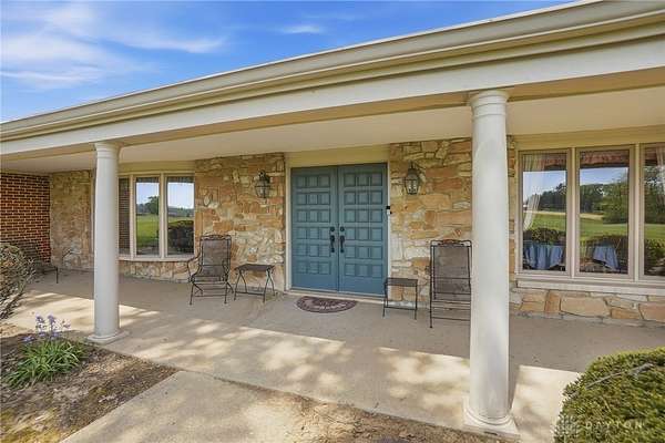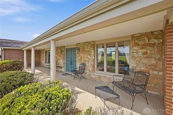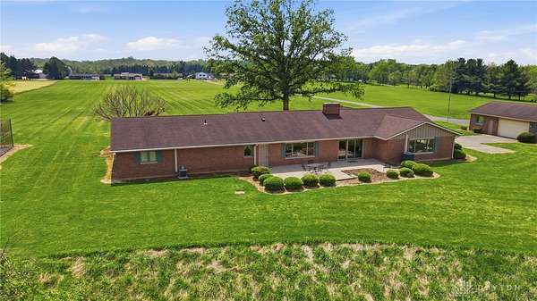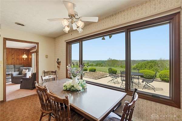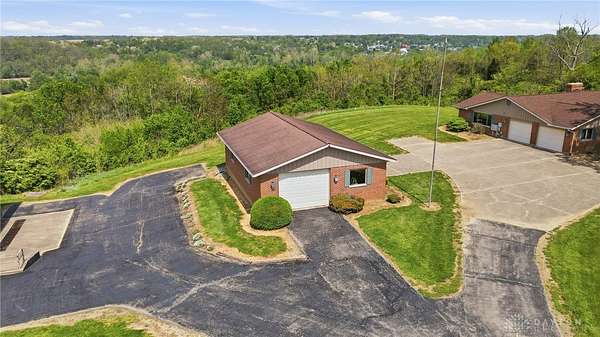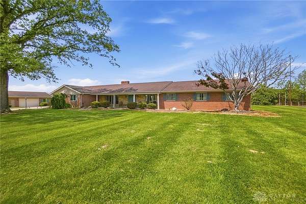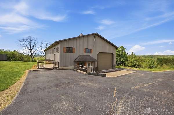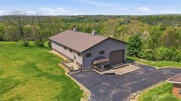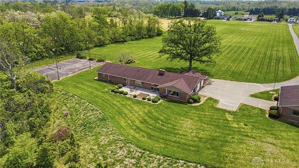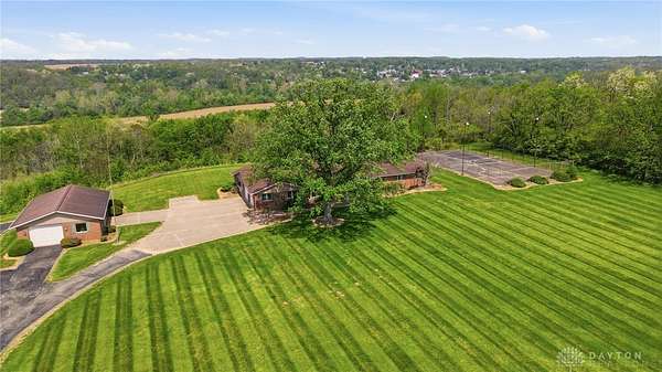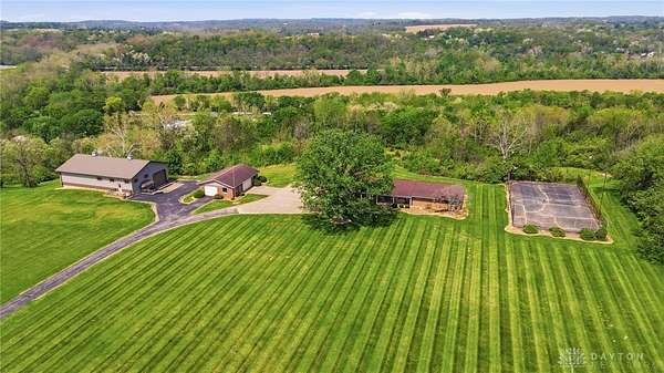 One of a kind property offering truly unbelievable views where you can see over the rolling hillside for miles & miles, delivering breathtaking sunsets from the rear yard & gorgeous sunrises from the front porch. Simply picturesque from all angles. Situated on just under 16 acres across two parcels in Wayne Township - no city tax, this sprawling 3,108 sq ft custom built ranch offers 4 bdrms & 2 full baths w/ an attached 2 car garage w/ pull down attic storage. Solid wood double doors welcome you into the foyer positioned between the formal living & formal dining rooms, leading to the heart of the home, the eat in kitchen, where large windows perfectly frame the stunning landscape while you enjoy meals, work or entertain. The cozy family room w/ fireplace flows into an expansive rec room ideal for entertaining, complete with space for a pool table, gaming area & more, all while continuing to capture the incredible views. Large laundry/mud room w/ exterior access connects to the guest bath, while down the hall you will find three guest bedrooms & a spacious primary suite w/ en suite bath. Updates include newer Pella wood casement windows, updated roof and updated HVAC. The property also features a detached garage/barn approximately 43x28 (1204 sq ft) with two large doors offering space for 4-5 vehicles, equipment or toys. A second detached structure is a massive Morton Barn w/ electric, partial plumbing, multiple air compressor hookups, an indoor basketball court, space for a future pickleball court & a second floor finished office w/ rec room. Park your boat, RV or whatever you need inside. This barn is a dream! A full size outdoor tennis/pickleball court completes this exceptional property offering privacy, versatility & unmatched scenic beauty. This type of property is rare, what an amazing place to call home! Photos do not do it justice. You must tour the property to appreciate its true, rare beauty. Walking distance to the bike path, minutes from Casears Creek.