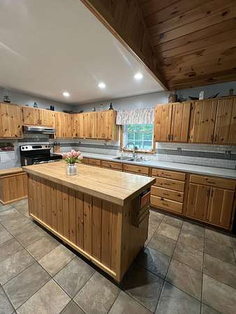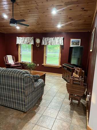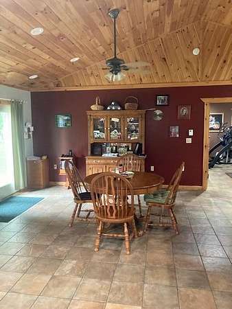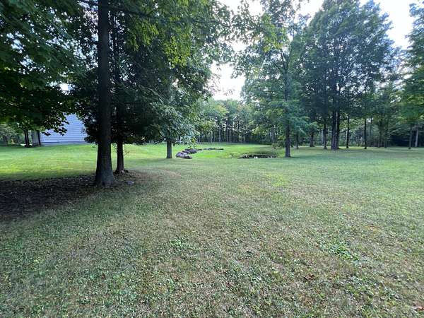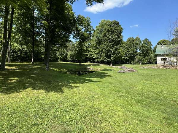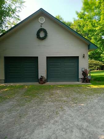 Gorgeous property sitting on a 35 acre lot features: private pond with large rocks bordering side/numerous hard wood trees/tree stands to hunt from or just view the wildlife/huge cleared lawn/extensive private 20 foot wide cleared roads run along the boundary of the property and crisscross throughout allowing easy access to many areas, great for RVing, cross country skiing, hiking....this is an amazing place for parents and children alike to enjoy and grow up or find the child in you again. There are 2 insulated, heated garages by the main house with steel siding on each. One has a maxi vent to ventilate the attic space and the house has 3 maxi vents. Garage one is a 28 x 32 two car garage on slab and has 2 separate garage doors. There is a walk up to a full second story with tons of storage or other possibilities Garage 2 is a 24 x 40 1 car garage with workshop and 15/24 semi-finished Man Cave There is a large 34 x 42 clear span garage/barn via a private road to the back of the property out of sight from the house but conveniently located close by. Main house sits on a cement slab with a covered porch Features of main house: 6 panel pine doors/vinyl siding/radiant heat flooring/smoke and fire alarms/fully insulated/blown in insulation in roof area/2 access panels to upper area of home/fuel oil heat/200 amp breakers electric/recessed LED lighting/1000 gallon septic/drilled well/water softner. Windows Thermal, double hung, Generator hookup, etc. Land borders a Forever Wild reserve. There is also the possibility of an adjoining acre for a total of 36 acres. Perfect place to either build a rental unit or have a great ''mother in law suite''.(Price for that lot is an additional $27,000) This acre is completely leveled and cleared but very private with plenty of trees bordering it and dispersed throughout. Sewer/Water/Electric in place and hard packed driveway with culvert running beneath allowing easy access from the main road. Ready to build on.