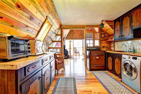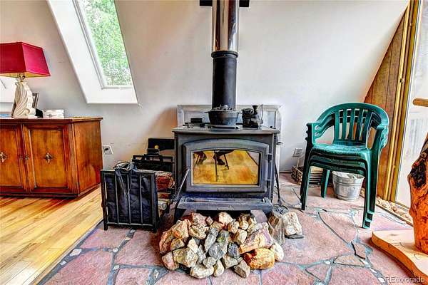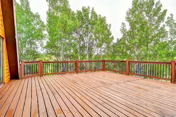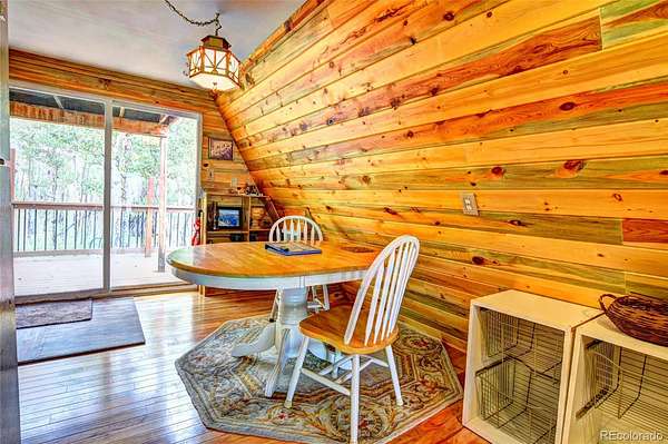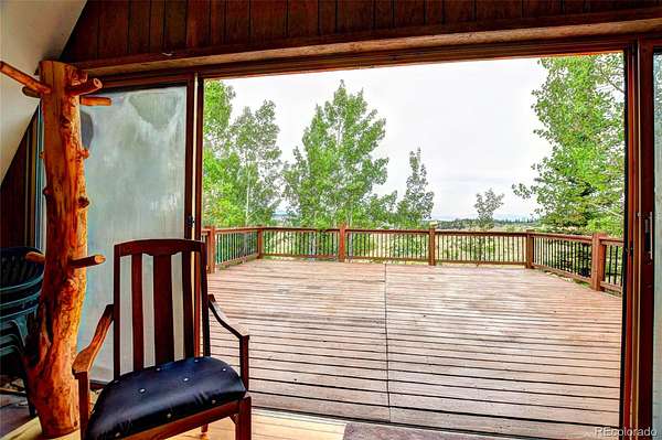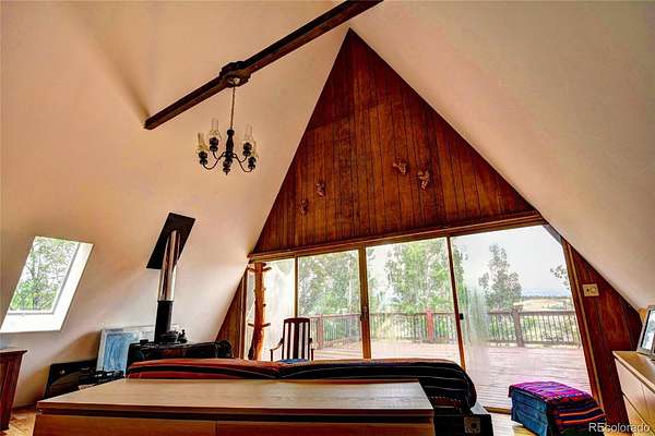 Nestled deep in the woods of Colorado, this charming 2-bedroom, 1-bath A-Frame house is surrounded by a serene grove of pine and aspen trees. The short driveway enhances the secluded feel, making it a perfect retreat. With 1220 square feet of thoughtfully designed space, this home offers small-size living at its finest, blending charm and functionality. The interior exudes a warm mountain feel, perfect for cozying up by the wood-burning stove. The house features one generously sized bedroom and a full bath, while the spacious upstairs loft provides breathtaking views from the windows. The front deck offers astonishing divide vistas, perfect for watching sunsets, stargazing, and spotting wildlife. Two rear decks offer privacy and a great place to enjoy your morning coffee. The detached garage, with its two unique bays, provides ample space for parking and storing all your outdoor gear, with additional storage above. Ideal for the mountain outdoor enthusiast, this home is situated in the Indian Mountain Community, with county-maintained roads ensuring easy access year-round. It is conveniently located near Hwy 285, Colorado Springs, Metro Denver, Breckenridge, Pike National Forest, and countless opportunities for outdoor adventures. The community offers amenities such as a clubhouse, showers, and an RV dump station. Whether you're looking for a year-round residence, a seasonal getaway from city life, or an opportunity for short-term rentals, this charming A-Frame home fits the bill. Additionally, adjoining property is available for purchase if you wish to expand your acreage.