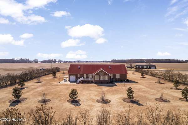 Come take a look at this Custom Built Spacious One-Owner Brick Ranch Home consisting of 3 Bedrooms, 2 1/2 Bath, Living Room, Den, Formal Dining Room, Kitchen with Breakfast Area, Sunroom, Laundry Area, Frog, Double Garage and a Storage Room. This Home has many Upgrades-Pella Casement Windows with Built in Blinds and Roll up Screens, Metal Rood, Hardwood Floors, French Drain Around Property and Extra Concrete. Enjoy the Peaceful Living while sitting on the Back Deck. This Beauty sits on 2 Acres. Great Location- Within 10 minutes of the Public Boat Ramp at the Perquimans River, Grocery Store and The Historic Town of Hertford. Easy Access to Hwy 17. Call today for a Showing!!!