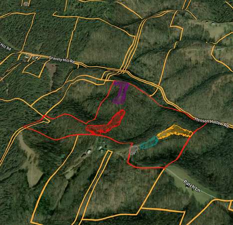 Soil testing will be completed by the end of the month. You'll have road frontage on both Patch Ln and Henson Hollow Rd (north side), offering easy access from either direction.