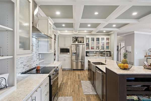 - Ceiling Fans(s), Coffered Ceiling(s), Crown Molding, Kitchen/Family Room Combo, Living Room/Dining Room Combo, Open Floorplan, Split Bedroom, Stone Counters, Walk-In Closet(s)