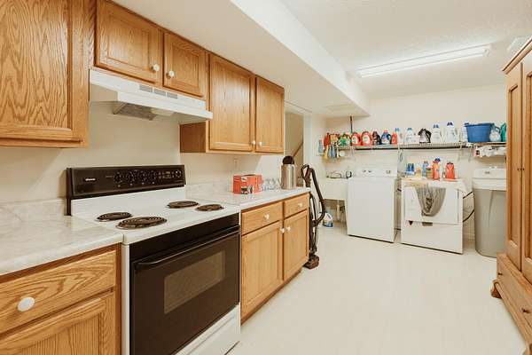 - Dishwasher, Disposal, Dryer, Oven, Range, Refrigerator, Self Cleaning Oven, Vented Exhaust Fan, Washer