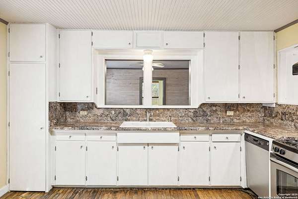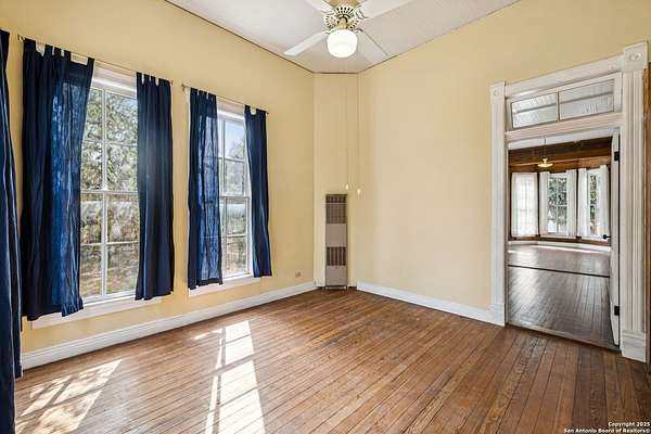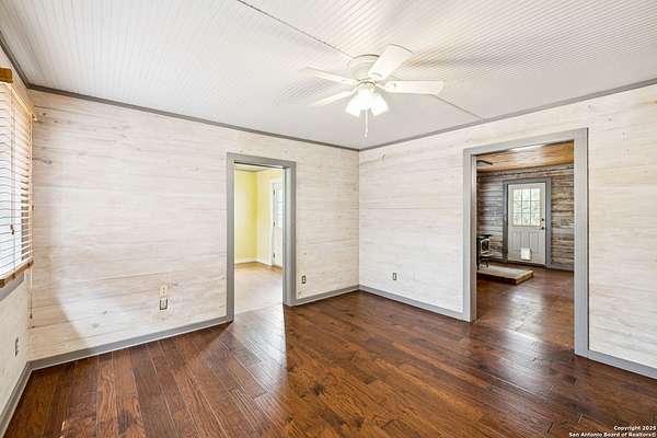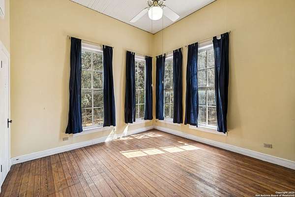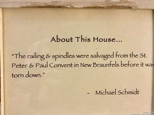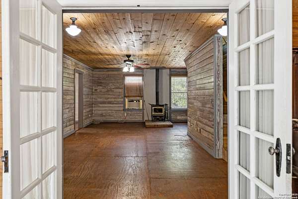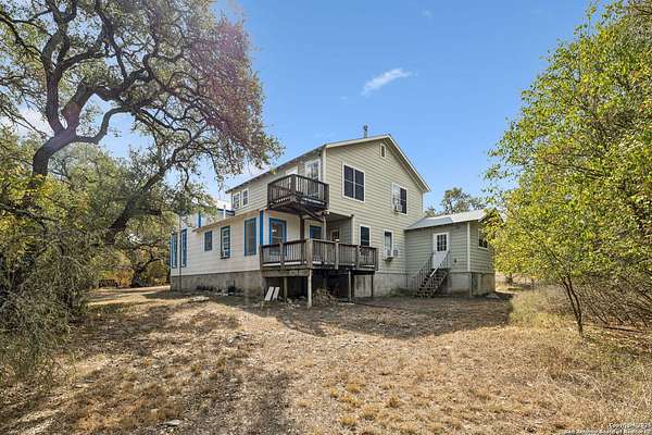 Every once in a while, a property comes along that offers the perfect blend of charm, privacy, and Hill Country living. The front of this country home was once part of a 1890s Methodist parsonage in New Braunfels, believed to have been constructed with hand-forged square nails and later relocated to this peaceful setting. Resting on 7 private, wooded acres with abundant wildlife, the home has since been thoughtfully expanded into a 4-bedroom, 3-bath residence with 2,931 sq. ft. of comfortable living space. Inside, you'll find inviting touches throughout-shiplap accents, wood floors, beadboard, high ceilings, sunlit French doors, and a warm country kitchen. Recent updates include new carpet in the upstairs bedrooms and a hand-built shed for added storage and functionality. Enjoy low utilities thanks to well water, plus a 500-gallon cistern for extra supply. Outdoors, a spacious deck overlooks towering oaks and a fenced yard, while the barn/workshop offers even more room to create, store, or work. An additional electric pole and cleared area provide a ready-made spot for your dream shop or future expansion. Exterior siding is Hardy plank for durability and peace of mind. This is a rare opportunity-a well-maintained country home with history woven into its frame, surrounded by nature, privacy, and room to grow. Here, you can start the next chapter of your story in a place that truly feels like home.
