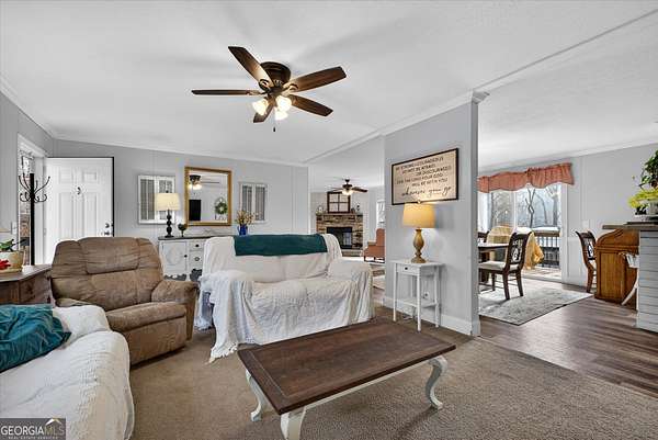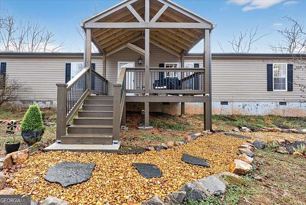 Welcome to your perfect blend of comfort, space, and country charm! Join us for an OPEN HOUSE on Friday, February 20th from 6:00-7:30 PM! This exceptionally well-maintained home consists of 4-bedrooms and 2-bathrooms which offers the space and setting you've been looking for. This home backs up to peaceful woods for added privacy and serene views. Start your mornings on the OVERSIZED FRONT PORCH, sipping coffee and soaking in the scenery. Step inside to an inviting OPEN-CONCEPT floor plan designed for both everyday living and entertaining. The SPACIOUS KITCHEN features abundant cabinetry, a high-top counter perfect for bar stools, and plenty of room for those who love to cook and gather. The dining area flows seamlessly into an ADDITIONAL LIVING SPACE highlighted by a stunning WOOD-BURNING FIREPLACE, perfect for cozy evenings at home. The primary suite is thoughtfully designed with an OVERSIZED WALK-IN CLOSET offering excellent storage. In the en-suite bath, unwind in the SOAKING TUB after a long day. You'll also enjoy a DOUBLE VANITY with a dedicated MAKEUP VANITY area, plus a separate room for the toilet and shower for added privacy. On the opposite side of the home, you'll find three additional bedrooms with generously sized closets and a second full bathroom, ideal for family or guests. Outside, the property truly shines. There is AMPLE PARKING with a METAL CARPORT and multiple driveway access points. Need extra storage? A STORAGE SHED with a double loft is included, offering endless possibilities. The backyard is your own private retreat featuring an outdoor living space with a patio, gazebo, and firepit area overlooking a beautiful BACKYARD OASIS and the 160-foot ZIPLINE stretching across the property. Enjoy breathtaking sunrises and sunsets from every angle of the home. Whether you're a deer lover, wildlife enthusiast, gardener, or simply prefer peaceful country living, this property has it all. Conveniently located between Gainesville and Cornelia and just minutes from Hwy 365, this home offers the perfect balance of privacy and accessibility. Schedule your showing today!