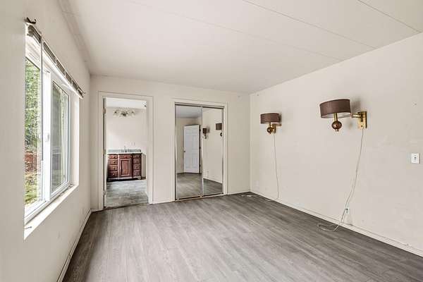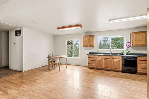 Set on 4.58 acres of level to gently rolling land, this property blends open meadow with mixed oak and fir forest and includes a seasonal pond, pasture, and space for animals, gardens, and a small homestead. The 1,536 sq ft, 2-bed, 2-bath manufactured home includes prior updates such as exterior siding, interior drywall, flooring, and bathroom fixtures. The existing home provides comfortable living while offering flexibility for future plans. Enter into the living room, where an inviting atmosphere sets the tone. The family room features a cozy wood stove, creating a comfortable gathering space. From there, the layout opens into a functional kitchen with a black appliance suite, offering practicality and connection to the main living areas. Additional features include exterior decks, 2 power meters (1 at the homesite and 1 at the RV parking site), a well with holding tank, and an established garden area. A versatile rural property offering land, utility, and long-term potential!
