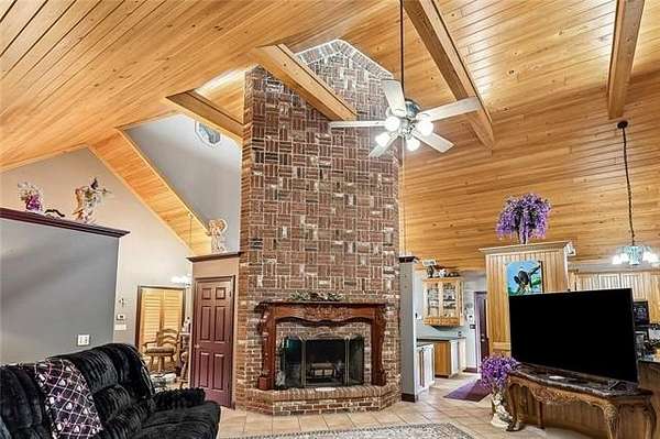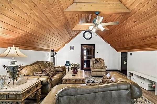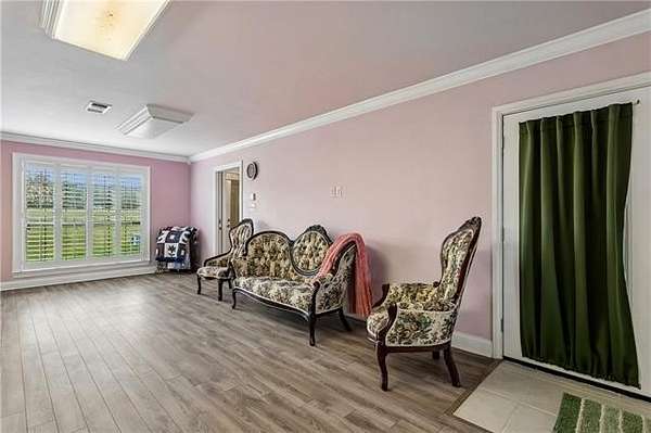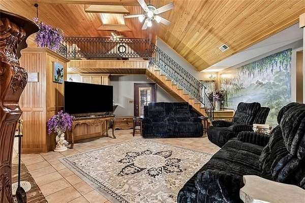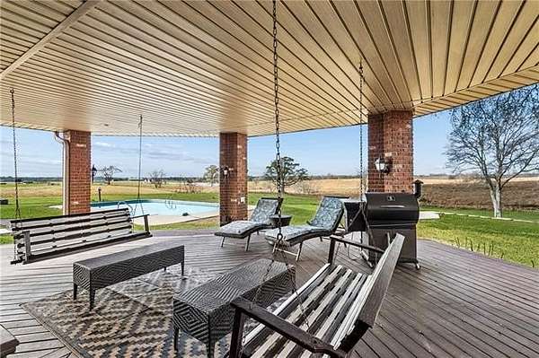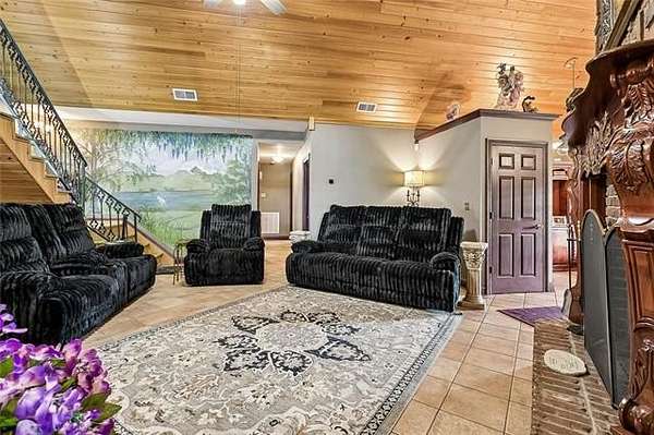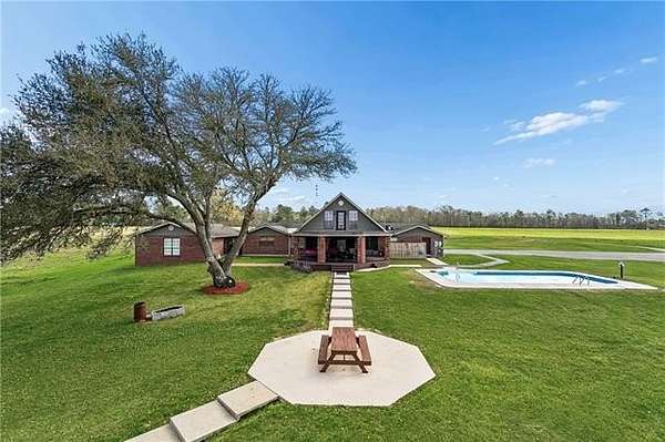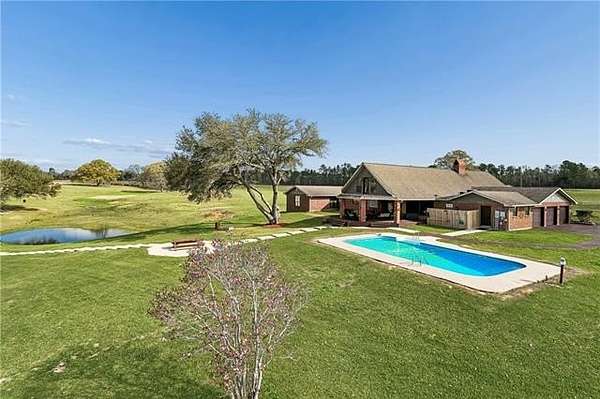 Beyond a private gated entrance, a paved winding driveway stretches across rolling pastures to this 27.2± acre estate, offering a serene retreat that blends privacy, space, and country living with refined comfort. The custom-built main residence showcases exceptional craftsmanship and character, including Rockwood plantation shutters throughout. The great room is the architectural centerpiece, featuring a floor-to-ceiling brick fireplace with a mantel inspired by the Biltmore Estate, cathedral pine tongue-and-groove ceilings, and an elegant open staircase with decorative wrought-iron railing leading to a loft overlook. At the heart of the home, a gourmet chef’s kitchen boasts custom solid-wood cabinetry, granite countertops, high-end appliances, and a large entertainer’s island. It flows seamlessly into a sunlit breakfast area and formal dining room, highlighted by a chandelier and a hand-painted mural by Barbara Paroni. The home offers four bedrooms and three full baths. The primary suite includes direct access to an expansive office/theatre living room with surround sound, ideal as a media room, gym, or home office. Outdoor living features a large screened porch, spacious deck, and in-ground saltwater pool overlooking two ponds, fruit trees, gardens, and fully fenced acreage with three gated entrances. A Victorian-style playhouse with a loft near the pond adds a whimsical touch. Adding versatility, the estate includes a separate five-bedroom residence with one full bath and two half baths. Zoned commercial, it offers options for extended family, guests, business use, or rental income. Conveniently located near Gulfport with easy I-59 access, the property combines country tranquility with city convenience. With stunning Mississippi sunsets, this estate offers a rare opportunity where lifestyle, beauty, and endless possibilities converge.