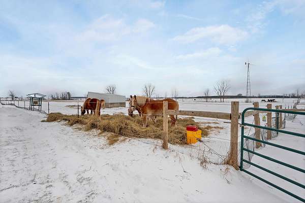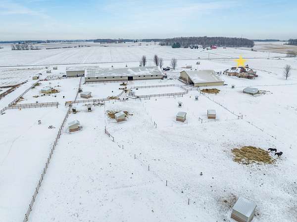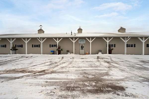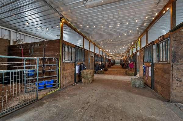 Potential $300,000 revenue-generating horse facility with rental stalls and a home situated on 40 acres! Over $570,000 of improvements have been made, making this an amazing business opportunity for horse enthusiasts, trainers, or boarding operations. This exceptional property includes a 31-stall barn with an indoor riding arena, tack room, bathroom, laundry room, in floor radiant heat, and plenty of space for equipment. Pastures have new winter waterers. An additional hay barn, full of hay, is included. The ranch-style 3 bedroom home offers an open-concept layout with vaulted ceilings and a walkout basement, providing comfortable living or great rental opportunity. Carpet on the stairs will be replaced. See additional documents for cash flow analysis, improvements, and included equipment.