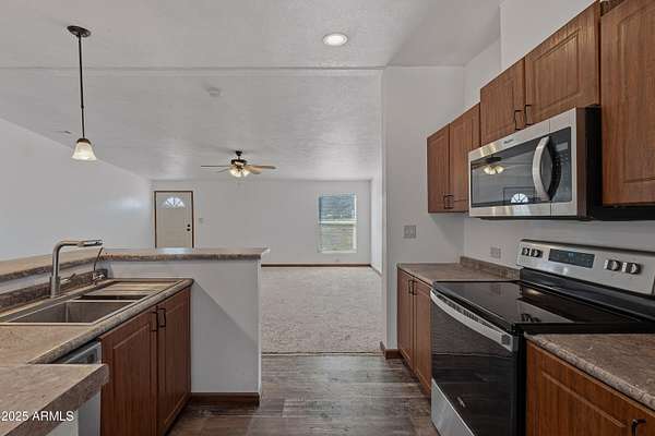 Experience the perfect blend of comfort and space in this stunning 1,865 sq. ft. home nestled on a generous 1.86-acre lot with panoramic mountain views. Featuring four spacious bedrooms and two full bathrooms, this property offers a thoughtfully designed layout ideal for both everyday living and entertaining. Interior Highlights Vaulted ceilings create an airy, open feel in the inviting living room Gourmet kitchen with abundant cabinetry, a large breakfast bar, and modern appliances: refrigerator, electric range, built-in microwave hood, and dishwasher Dedicated laundry/mudroom for added convenience Primary suite includes a double vanity, walk-in shower, and a luxurious soaking tub Outdoor Living Expansive yard with room to roam, play, or relax