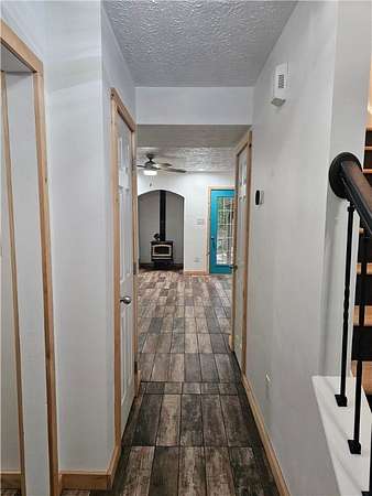 Charming 4 bedroom home nestled in a wooded retreat. Property is situated in a serene wooded setting featuring 4 bedrooms, 2 1/2 bathrooms, all electric, septic & well water (has water softener) Step inside to find a wood look ceramic floors throughout the main living area for easy cleaning and durability. Wood burning stove adds extra warmth on the chilly nights. Upstairs you will find all bedrooms carpeted for a cozy environment. 2 car garage leads to a parking pad & private drive way. Perfect balance of nature and comfort awaits you in this home. Pets allowed with fee/monthly pet rent. No subsidies accepted at this time. No smoking or vaping.