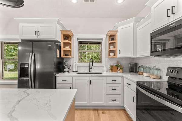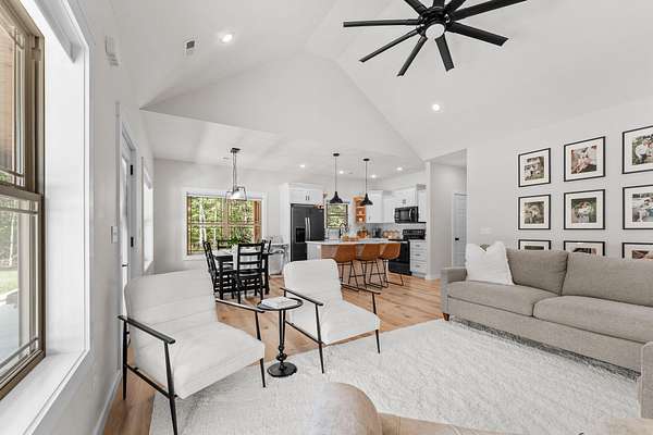 Elegant Country Living at Its Finest!Discover the perfect blend of rustic charm and modern luxury with this stunning and spacious barndominium, situated just 6 miles from town on a well-maintained blacktop highway. Nestled on 15 mostly wooded acres teeming with wildlife--including whitetail deer, foxes, squirrels, and the occasional bear--this property is a dream come true for outdoor enthusiasts.A long, private driveway welcomes you home, leading to beautifully landscaped grounds and an inviting entrance. Step inside to find a generous open-concept living area that flows seamlessly into an elegant kitchen featuring quartz countertops, abundant cabinetry, and extensive storage space.The luxurious master suite includes a private bathroom, and walk-in closet, while two additional spacious bedrooms share a beautiful second full bathroom. Head upstairs to find a cozy second living area and a private office or potential fourth bedroom--perfect for working from home or accommodating guests.With 2,500 sq. ft. of living space and an additional 2,500 sq. ft. of clean, well-lit shop space, the possibilities are endless. The shop boasts speckled concrete floors, LED lighting throughout, and even includes an interior RV hookup for electricity. Outside, you'll find a large parking pad along with sewer and electrical hookups for an RV, making this home ideal for travelers or visiting family.From its thoughtful floor plan and upscale finishes to the peaceful wooded surroundings and practical amenities, this property truly offers country living at its most refined. Don't miss the chance to make this beautifully designed home your own!