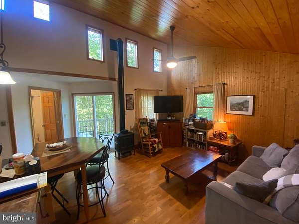 This exceptional residential property, located in the desirable Skyline Lakes subdivision, presents a unique investment opportunity. Built in 2006, this detached cabin-style home offers a blend of rustic charm and modern amenities, making it an attractive option for both rental and resale markets. The interior features an entry-level bedroom complemented by skylights that enhance natural light throughout the space. The cozy living area is equipped with a wood stove, providing warmth and ambiance during colder months. The kitchen includes essential appliances such as an electric oven/range and refrigerator, ensuring functionality for potential tenants or future owners. The unfinished basement offers additional storage or the potential for future expansion, increasing the property's value. Externally, the property boasts a spacious 1.16-acre lot, partly wooded, providing privacy and a serene environment. Outdoor amenities include a deck and porch, ideal for relaxation or entertaining, along with a BBQ grill for outdoor cooking. The roof deck offers additional outdoor space with scenic views of the surrounding trees and woods, enhancing the property's appeal. Parking is conveniently available via a driveway, ensuring ease of access. This property is not only a charming retreat but also a strategic investment, with the potential for appreciation in value and rental income in a growing market. The combination of its features and location makes it a compelling choice for discerning investors seeking long-term returns. All furnishings convey with the property.