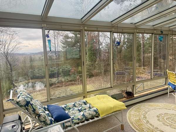 - Blinds, Ceiling Fan, Curtain Rods, Doorwall