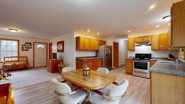 Set in a peaceful rural country setting, this well-maintained 3-bedroom, 2-bath home offers the perfect blend of comfort and convenience on a spacious 2-acre lot. Inside, you'll find a functional layout with first-floor laundry and warm character throughout, highlighted by classic 6-panel pine doors. The home comes fully applianced, making it move-in ready, while the partially finished basement provides additional flexible space for a family room, home office, or gym. Step out from the dining area through sliding doors onto a generous 10 x 20 back deck--ideal for relaxing or entertaining while enjoying the privacy of your surroundings. Additional features include a durable metal roof, a 2-car attached garage, and the peace of mind of an on-demand generator. Enjoy the quiet of country living without sacrificing convenience, with easy access to Lewiston/Auburn for shopping, dining, and commuting.