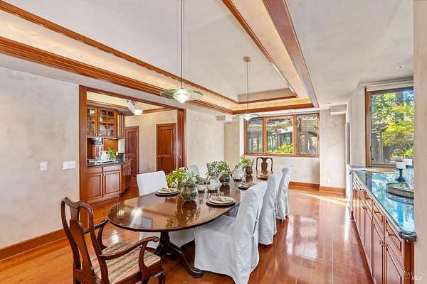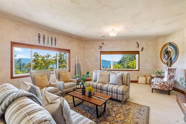 Welcome to this multi-generational living compound spanning 568 & 570 Sunset Drive plus an additional parcel for a total of ~6 acres. With sweeping 180 degree views of Napa Valley, this estate offers unmatched privacy & versatility. Take in the breathtaking views from sunrise to sunset, while enjoying the sparkling, lake-like pool or the tranquility of the built-in spa. Inside is a spacious & open floor plan designed to maximize entertaining; large island kitchen, 2 pantries, double ovens, Sub-zero & Thermador appliances.The thoughtful layout includes a downstairs ensuite. Escape to the owner's suite w/private spa like bath; soak in the tub or enjoy a steam shower. A nature lover's delight with expansive outdoor lawn areas, a built-in BBQ/kitchen and star chart room. Enjoy the large shop with 220v power, perfect for projects or professional work, multiple garages for car enthusiasts, an outdoor basketball court, bocce court, indoor racquetball court & weight room cater to active lifestyles. The 570 home is ideal for guests, nanny or caretaker accommodations. Just minutes away from highly-rated schools, pristine parks, scenic trails and community events. It's an inviting haven for creating cherished memories with loved ones and seamlessly blends luxurious living with convenience.