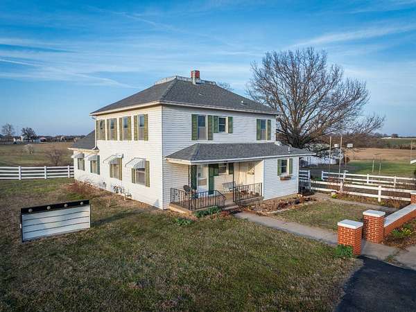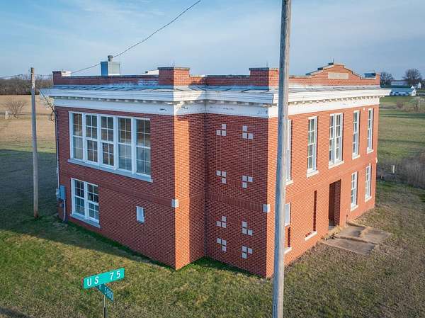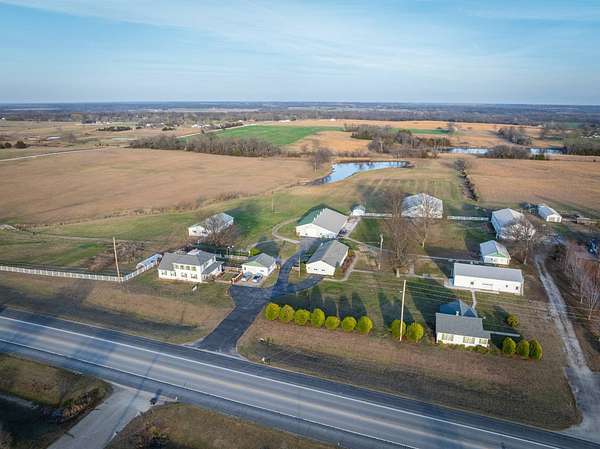 Venue for celebrations, retreats, and meetings. 40 Acres with a pond, white fence, a one story bungalow style house and a larger 2 story house, multiple nice buildings, and the historic school house building along Hwy 75 at Sycamore, Kansas. The possibilities are endless. It has previously been used as a meeting place for conventions and it would be great as a special event venue. There are 8 more buildings including garages, a barn, farm utility type buildings for storage and residential type dormitories with bathrooms, areas for laundry. One building is dedicated for use as a commercial grade kitchen with one side that opens for serving. This is ideal for accommodating camp meetings, a hunting lodge, or large groups. Let your imagination soar. Building Sizes: 33x66; 52x84; 20x16; 84x60; 40x24; 24x56; 30x64; 23x27. Bungalow House 1,036 sq ft; School House 2,788 sq ft