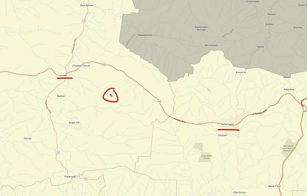 Take either 412 east from Linden or 412 west from Hohenwald to Poplin Hollow Rd. South on Poplin Hollow Rd for 2.1 miles, then right at the Tee on Old Hohenwald Rd. Lot 72 will be on your right after 4.1 miles. Look for the gates with the "W".