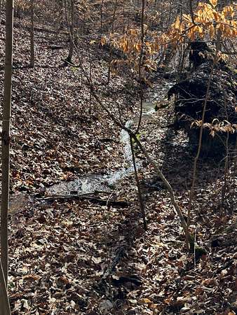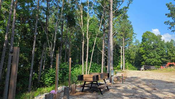 A year-round, spring-fed creek runs near the back of the property, providing a peaceful setting and a touch of natural beauty. The lot also features a fire pit area, benches, and picnic table (note: these furnishings are not included but give you an idea of the lifestyle this property supports).