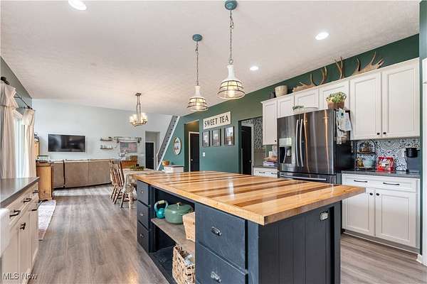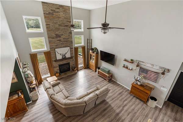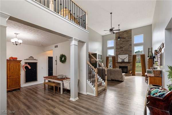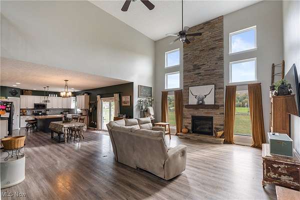 Nestled on 3 peaceful acres, this newly Amish-built 3-bedroom, 2.5-bath home combines modern luxury with country charm. Offering 2,850 sq ft of open-concept living space-plus a partially finished basement-in the desirable Ridgewood School District, it features vaulted ceilings, a stunning 17-foot stone fireplace, a stylish kitchen, a spacious primary suite with dual walk-in closets, and convenient first-floor laundry. The basement provides extra room for a gym, media area, or additional living space, while outside, the beautiful patio overlooks ample space to roam, garden, or add a pool. A 32x48 heated garage, built in 2019, includes a wash bay drain, heated floors, and 240-amp power-completing this move-in-ready home surrounded by quiet, scenic views.